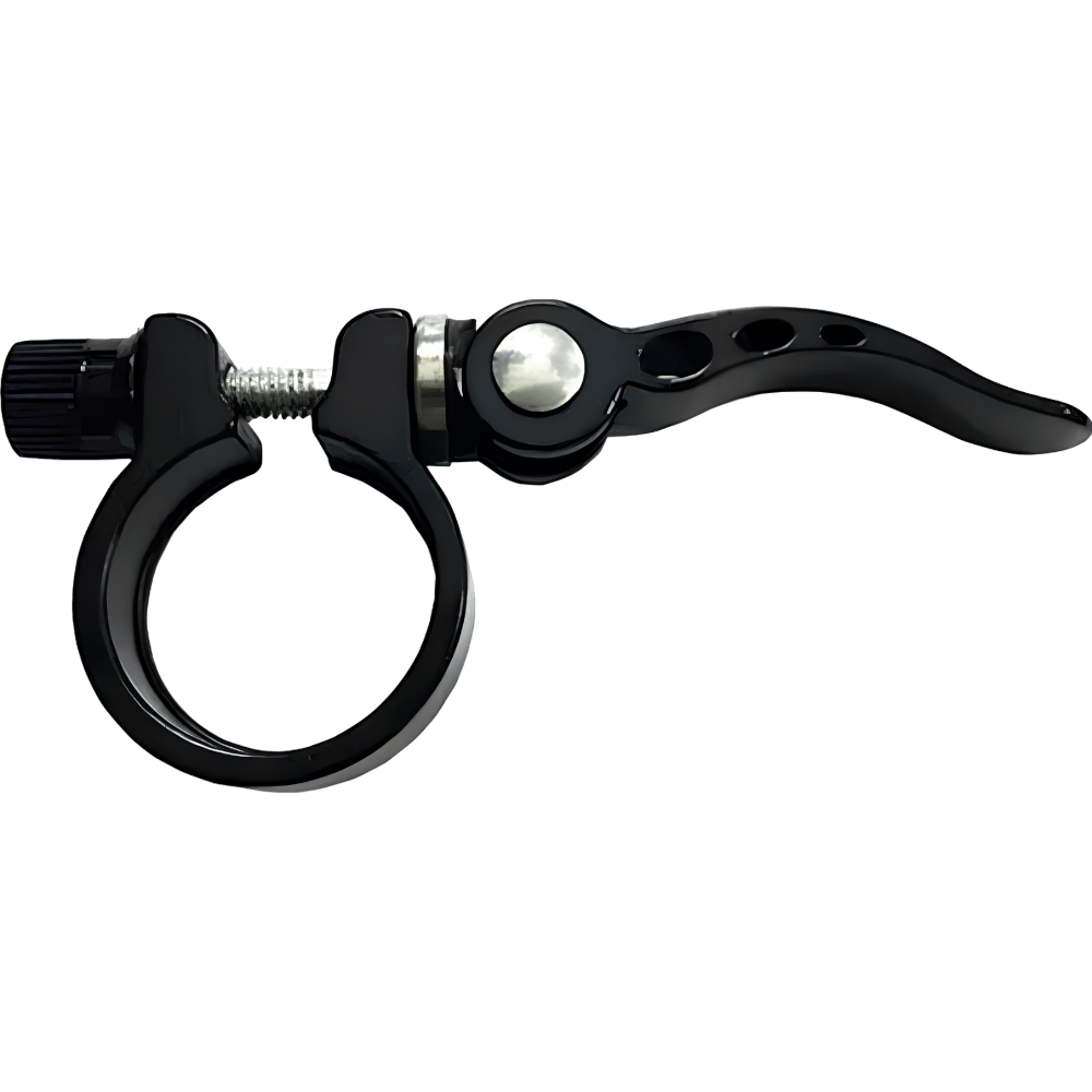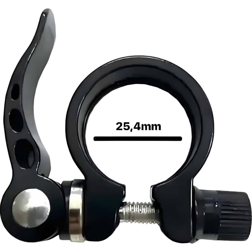 O design desta abraçadeira inclui um sistema de blocagem rápida, permitindo ajustes precisos e seguros sem a necessidade de ferramentas adicionais. Esse sistema facilita o manuseio e agiliza a troca ou reajuste do selim, oferecendo uma experiência prática e eficiente para o ciclista.