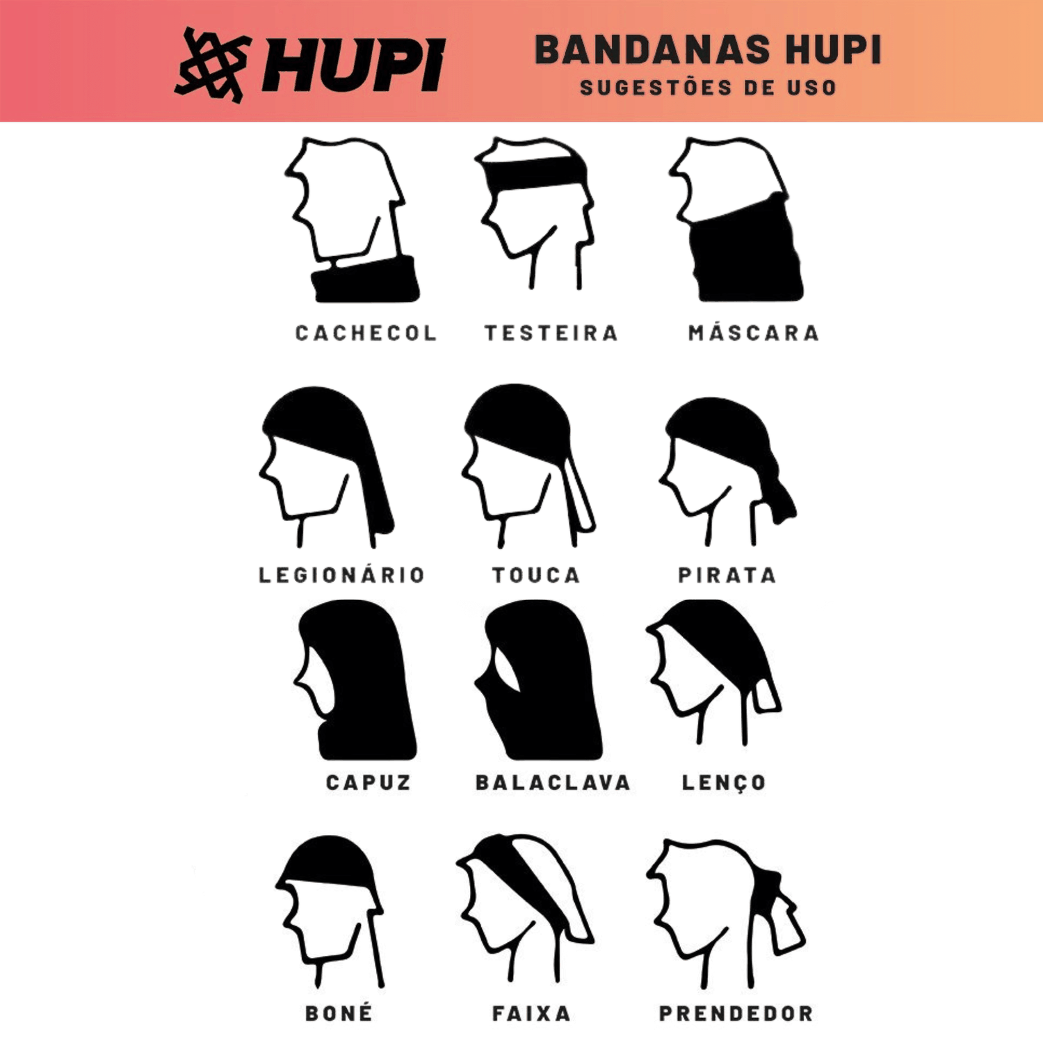 A Bandana Hupi Simbol Branca e Preta é a escolha perfeita para quem busca um acessório versátil e funcional, ideal para qualquer condição climática e tipo de atividade.