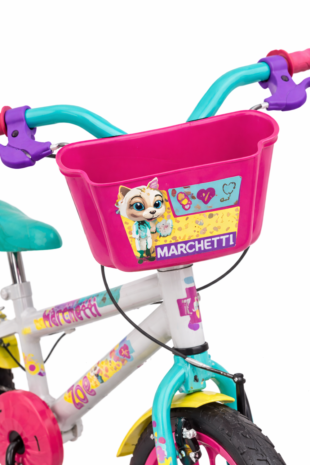 BICICLETA ARO 16 ZOE MARCHETTI AÇO BRANCO/ROSA/VERDE