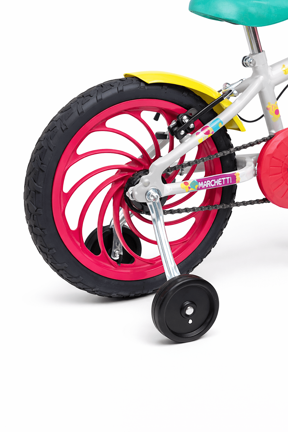 Projetada especialmente para o público infantil, conta com aro 16, ideal para proporcionar melhor controle e equilíbrio durante a aprendizagem. Possui rodinhas laterais removíveis, que auxiliam no desenvolvimento da coordenação motora e podem ser retiradas conforme a evolução da criança.