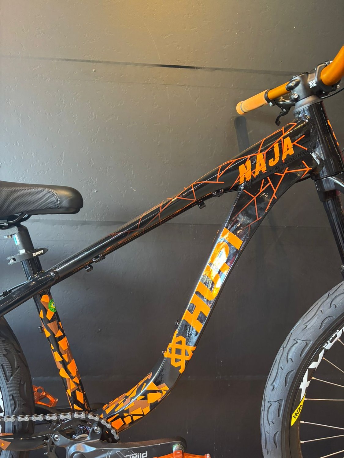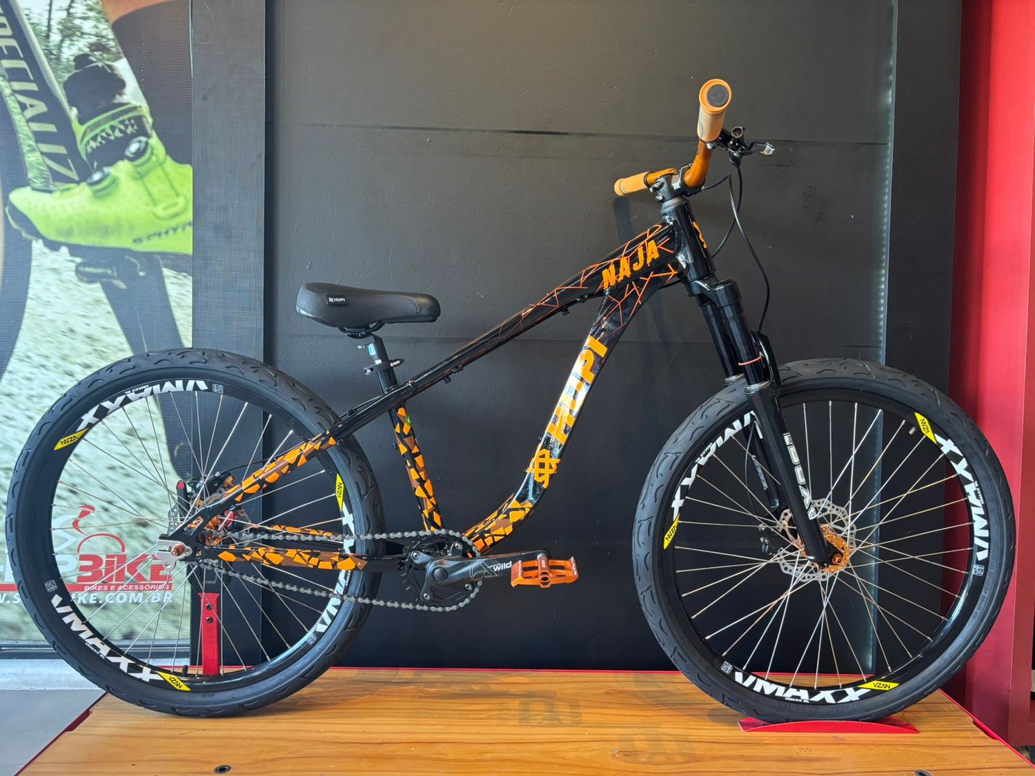 Bicicleta Aro 26 Hupi Naja V9 Kit Single Preto/Laranja – Resistência Extrema e Performance no Grau