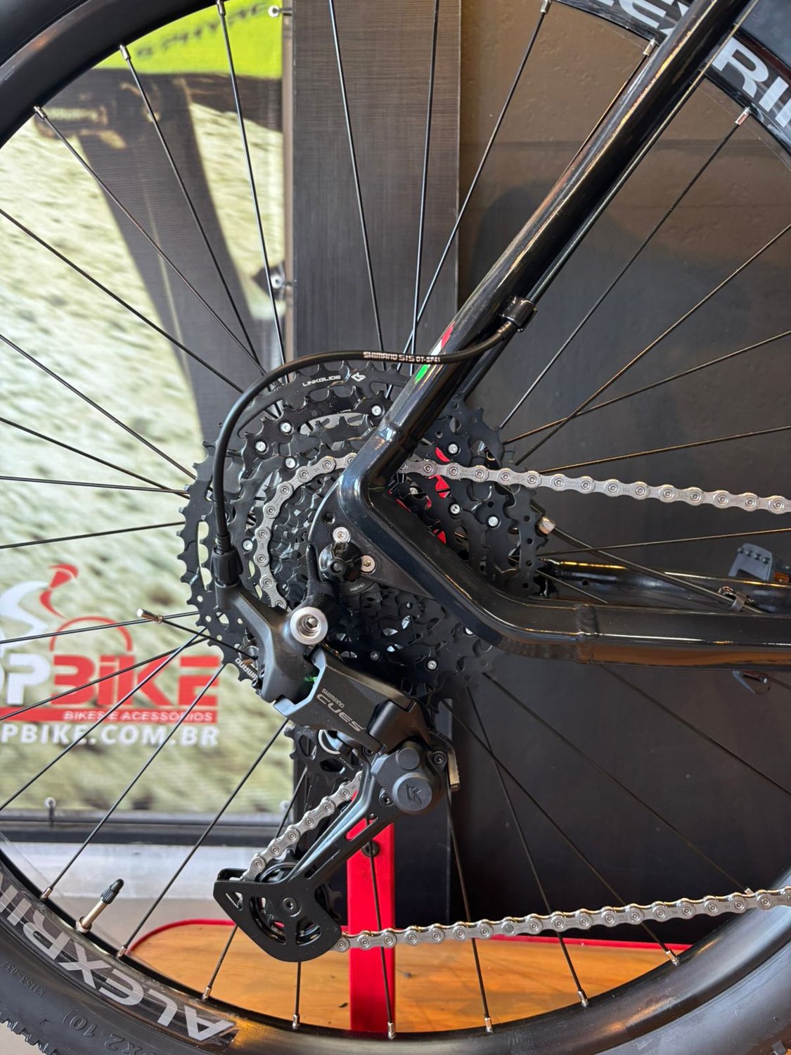 Seu quadro é construído em alumínio 6061 T6 tratado, oferecendo excelente resistência e leveza, além de contar com cabeamento interno, que melhora o visual e protege os cabos contra sujeira e desgaste.
