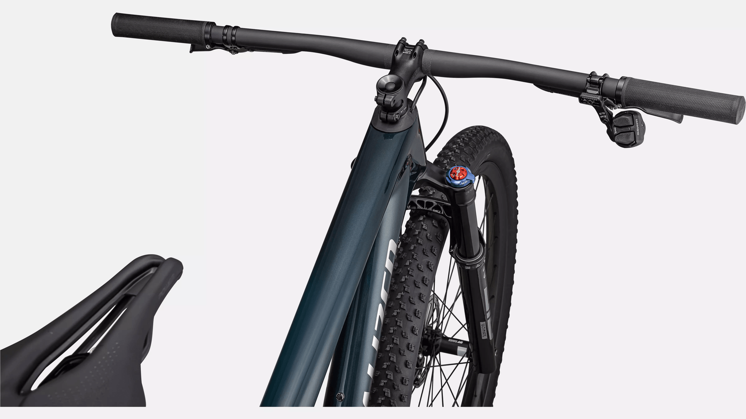 - Guidão: S-Works Carbon XC Mini Rise, 6-degree upsweep, 8-degree backsweep, 10mm rise, 760mm, 31.8mm;