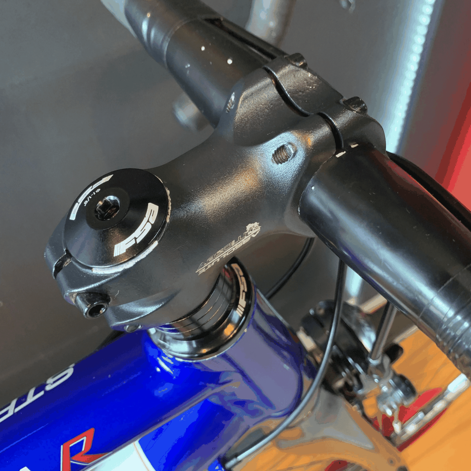 O guidão Promax 425mm proporciona uma pegada firme e confortável, enquanto a mesa A250 Lute de 65mm garante controle e agilidade mesmo em curvas rápidas. O selim Fizi:k 130mm completa o conjunto com conforto e ergonomia, ideal para longos pedais.