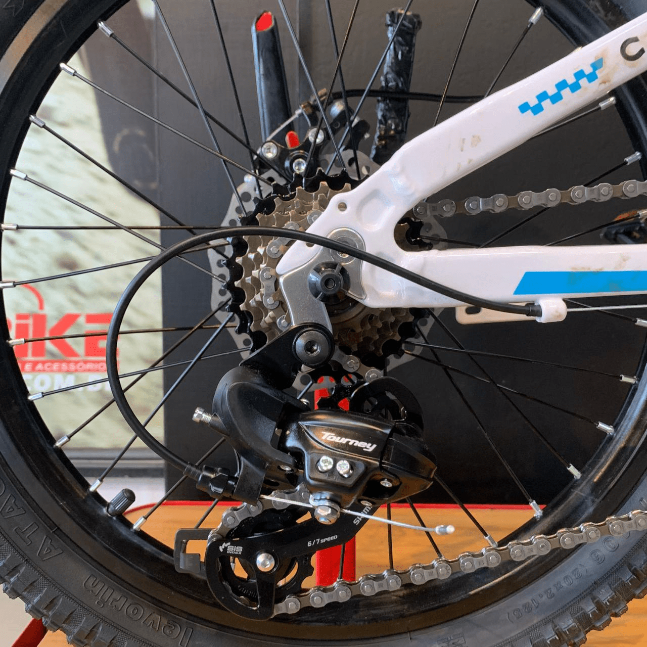 - Câmbio Traseiro: Shimano Tourney, 7 Velocidades;
