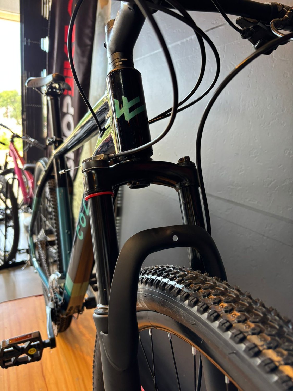 Seu quadro resistente aliado à geometria confortável oferece mais estabilidade e segurança durante o uso, seja em trilhas leves ou no dia a dia urbano. A suspensão dianteira contribui para absorver impactos, proporcionando mais controle e conforto em terrenos irregulares.
