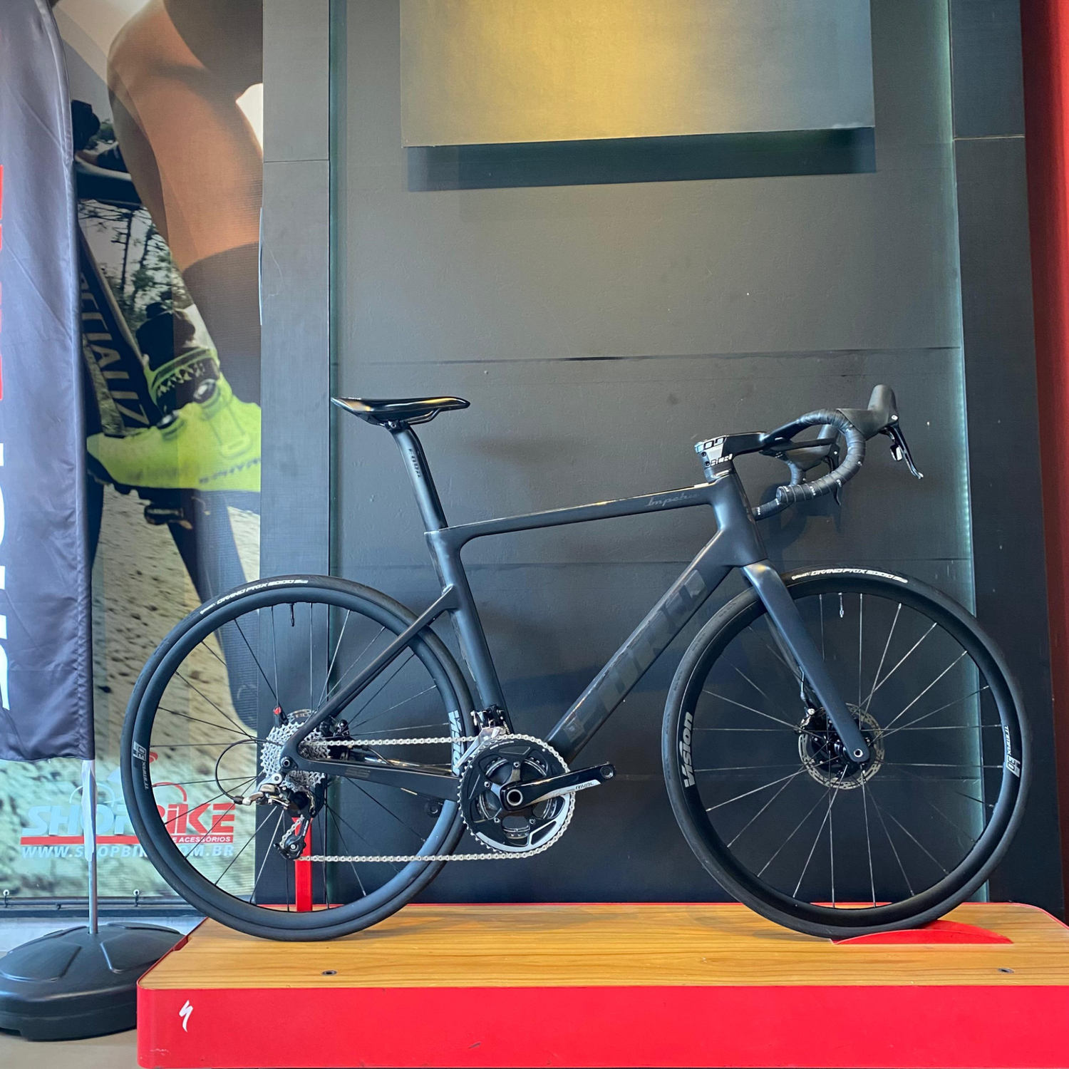 A bicicleta equipada com quadro RD High Modulus UD Carbon Fiber Monocoque foi projetada para ciclistas que buscam máxima leveza, rigidez e eficiência em provas, treinos intensos e longas distâncias. Com geometria moderna, construção monocoque de alto módulo e cabeamento totalmente interno, ela oferece uma pilotagem extremamente responsiva, silenciosa e aerodinâmica. O conjunto é complementado pelo garfo em Carbon High Modulus, garantindo precisão na direção, absorção de vibrações e estabilidade mesmo em alta velocidade.