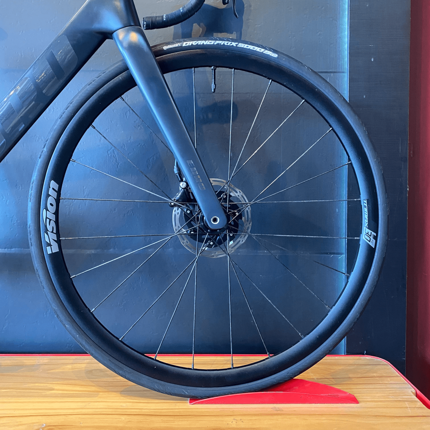 As rodas Vision Trimax DB TC 30 rolamentadas, combinadas com os pneus Continental GrandPrix 5000 Tubeless 700x28, entregam alta rolagem, aderência superior e excelente resistência a furos — perfeitas para quem quer rendimento puro no asfalto. Com apenas 8kg (aprox.), esta road bike é construída para quem busca desempenho absoluto e um setup extremamente leve.