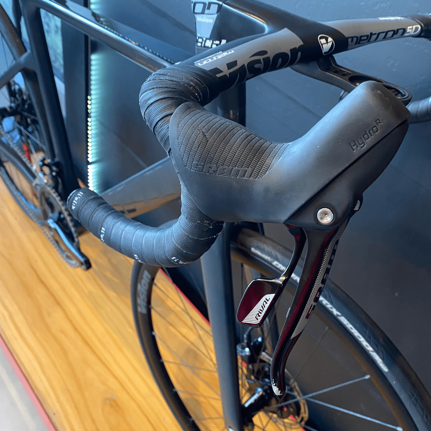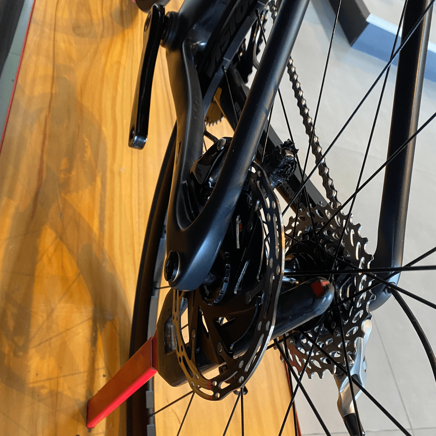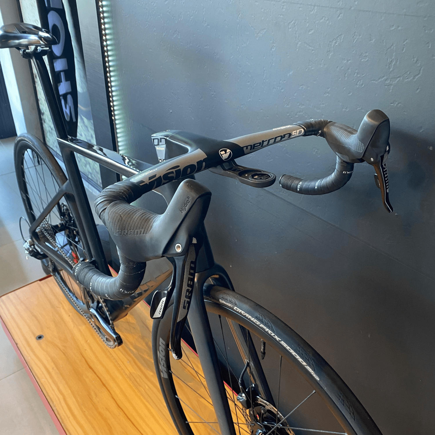 A transmissão SRAM Rival entrega excelente performance, com trocas rápidas e suaves, e o cassete 11-45 assegura ampla relação para encarar subidas longas e ritmadas. O cockpit totalmente integrado Vision Metron Carbon eleva a aerodinâmica a outro nível, proporcionando rigidez e estética limpa digna de bikes de competição. O canote Edro UD Carbon e o selim fizik Argo completam o conjunto com conforto e eficiência para longas horas de pedal.