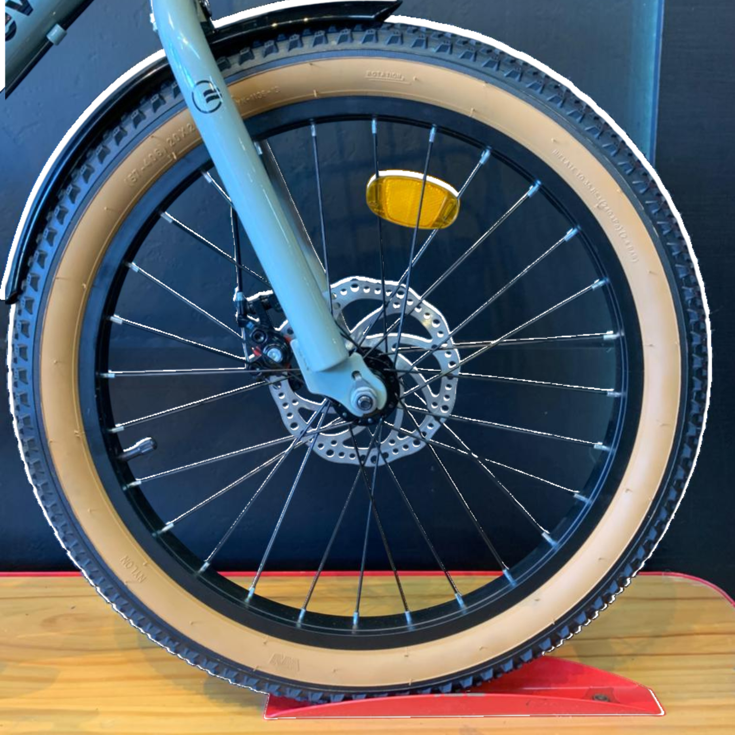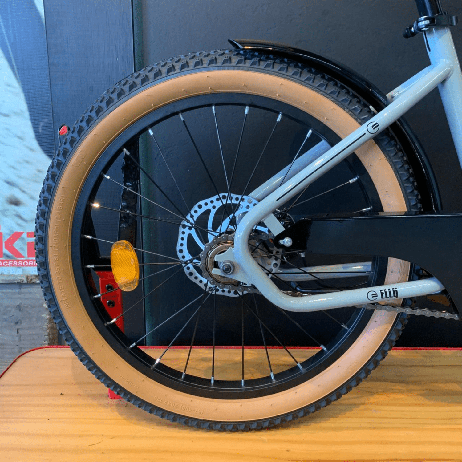 Pneus 20 × 2.125 bicolor (preto e marrom) com cravos;