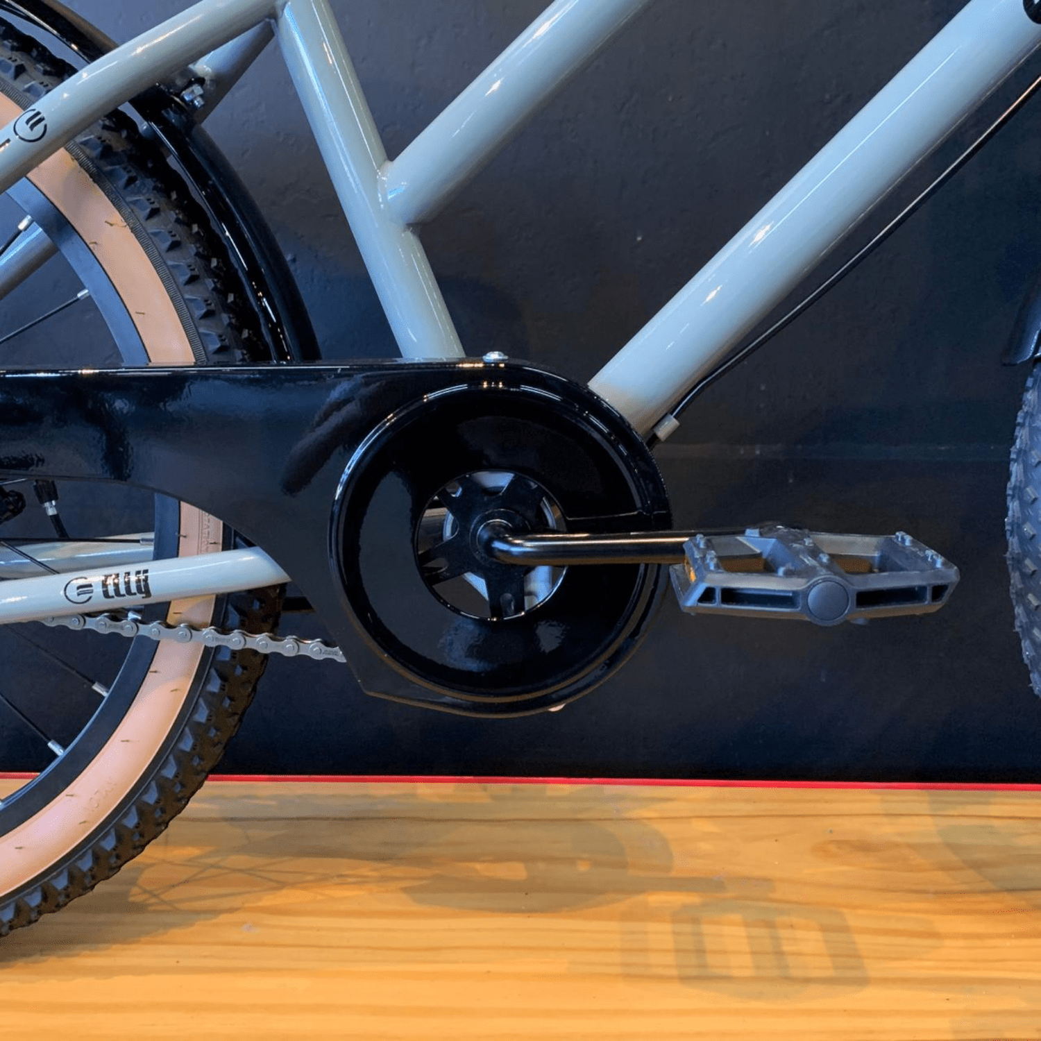 O quadro em aço reforçado com tubos remodelados garante alta durabilidade, enquanto o freio a disco mecânico de 160 mm oferece mais segurança nas frenagens. Os pneus 20 × 2.125 bicolores e o selim infantil conforto proporcionam estabilidade e comodidade. A charmosa cesta frontal em aço e os paralamas estilo europeu completam o visual, tornando a Elly uma bike elegante e funcional para o dia a dia das pequenas ciclistas.