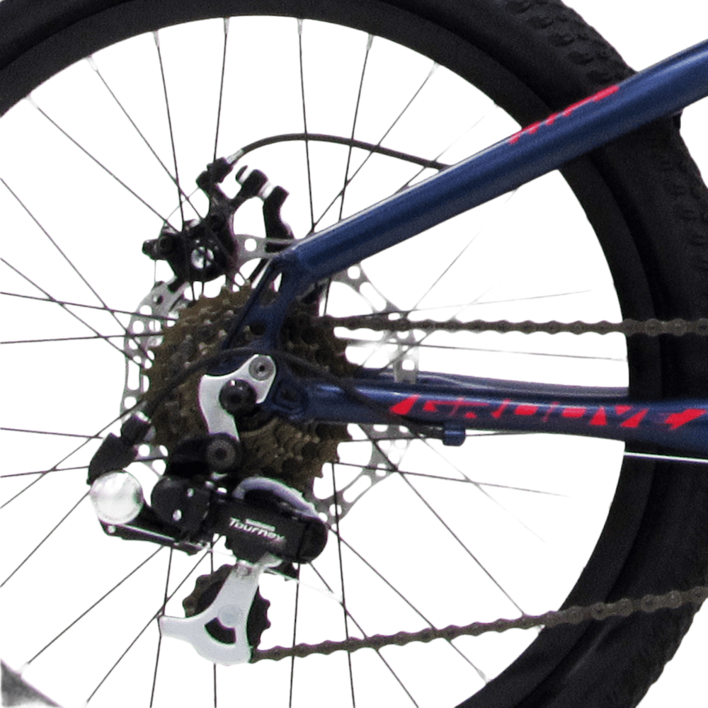 Quadro de alumínio com cabeamento interno, rodas aro 20″, freios a disco mecânico, suspensão e câmbio de 7v faz da Hype Jr 20 a bike ideal e completa para seu filho se divertir em qualquer trilhas pelo caminho.