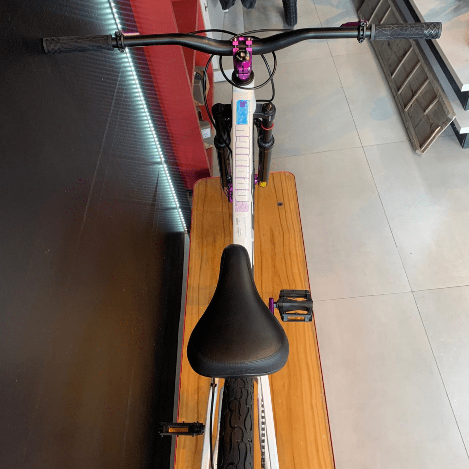 No cockpit, a GTA Gravity entrega controle máximo e postura agressiva. O guidão em alumínio de 800mm amplia a alavanca de direção, oferecendo maior estabilidade em saltos e curvas fechadas. A mesa GTA de 50mm contribui para uma pilotagem mais responsiva, enquanto o canote em alumínio preto e o selim GTA de 170mm completam o conjunto com resistência e ergonomia adequadas ao uso intenso.