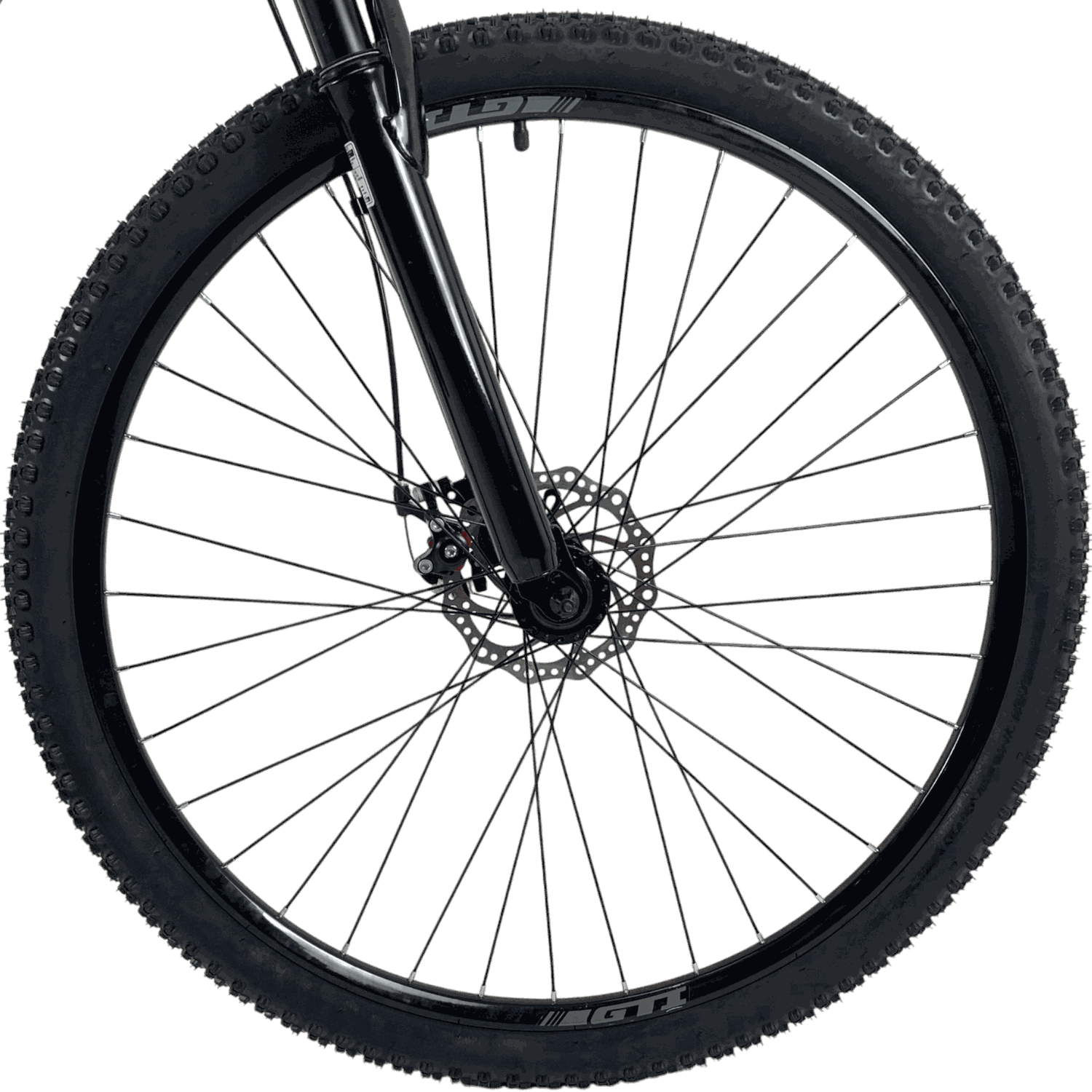 Os aros GTI combinados com os cubos Absolute e pneus DSI 29x2.10 oferecem resistência, durabilidade e excelente tração, tornando essa bike perfeita para trilhas e passeios em diferentes tipos de terreno.