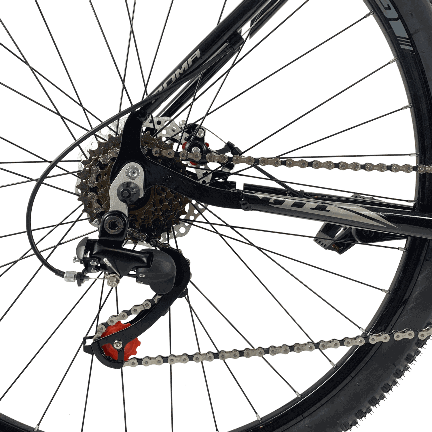 Equipada com 21 velocidades, a GTI Roma oferece trocas rápidas e precisas através dos passadores Shimano SIS Index. O câmbio dianteiro Shimano Tourney TZ FD-TZ510 e o câmbio traseiro com 7 velocidades proporcionam uma pedalada suave e eficiente em diversas condições.