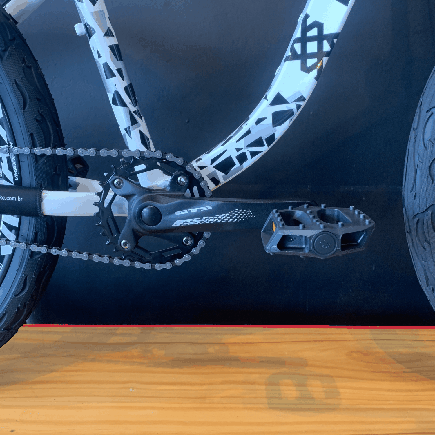 Equipada com pedivela GTA Single e coroa de 34 dentes, essa bike oferece uma pedalada fluida e responsiva. A corrente TEC C410 grossa garante maior resistência e durabilidade, enquanto a catraca roda livre Paco com 18 dentes proporciona um desempenho consistente.
