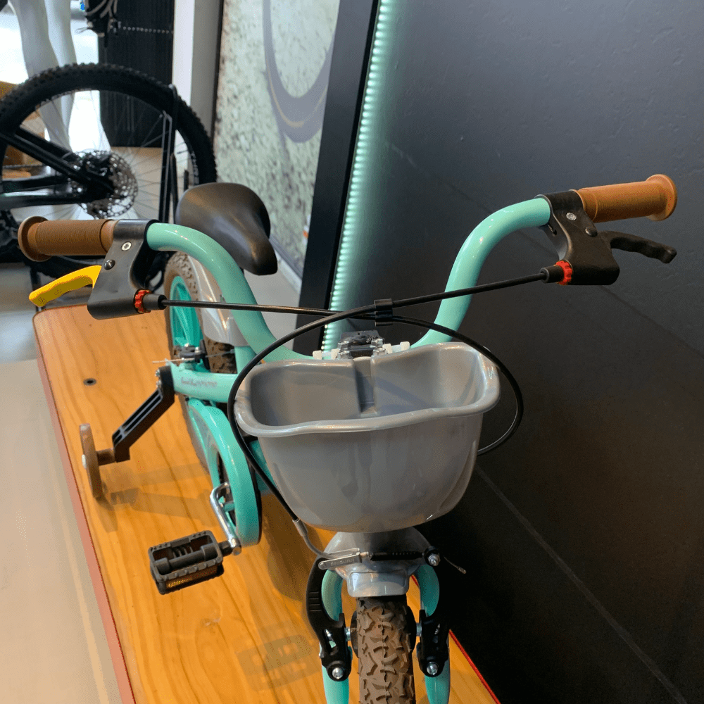 A bicicleta está disponível com aro em ABS ou em alumínio, proporcionando opções de escolha. O limitador de giro do guidão aumenta a segurança, evitando que o guidão vire completamente. A maçaneta amarela destaca o freio traseiro, facilitando o aprendizado e a identificação correta do freio, durante a infância, a maioria das crianças não tem facilidade em diferenciar “direita” e “esquerda”, mas tem a atenção muito disposta em relação a cores.