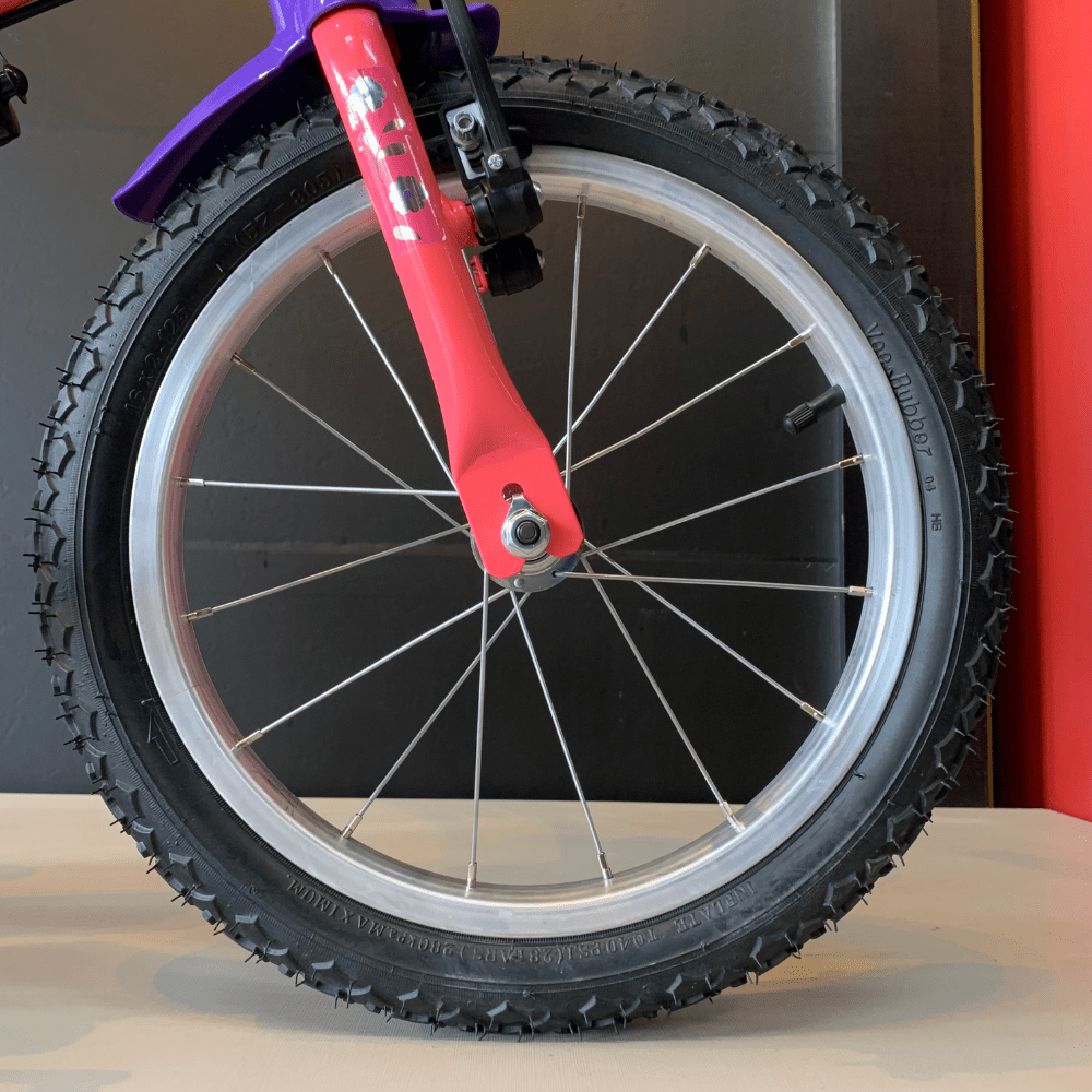 A bicicleta aro 16″ possui um mecanismo que impede que o guidão gire além do necessário.