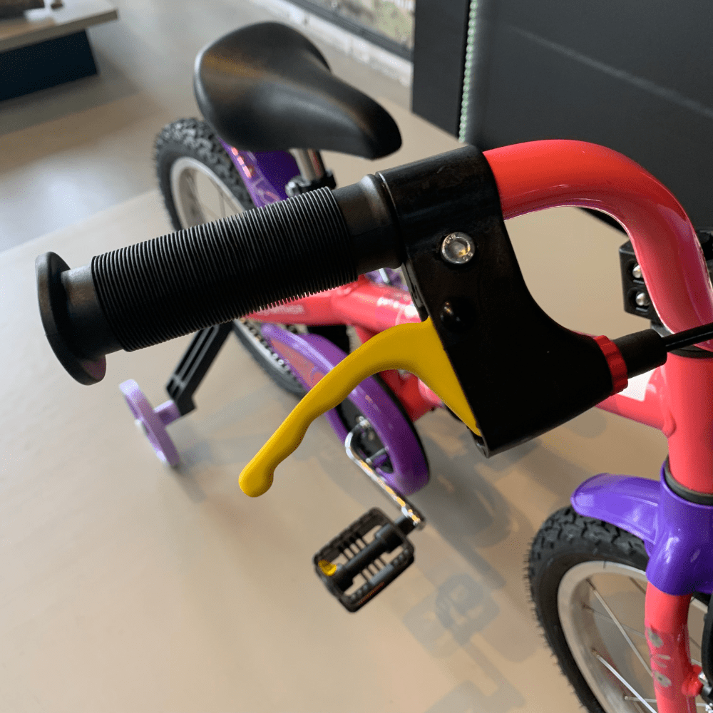 Para tornar o acionamento do freio traseiro mais intuitivo e garantir ainda mais segurança, decidimos diferenciar a maçaneta direita com a cor amarela.