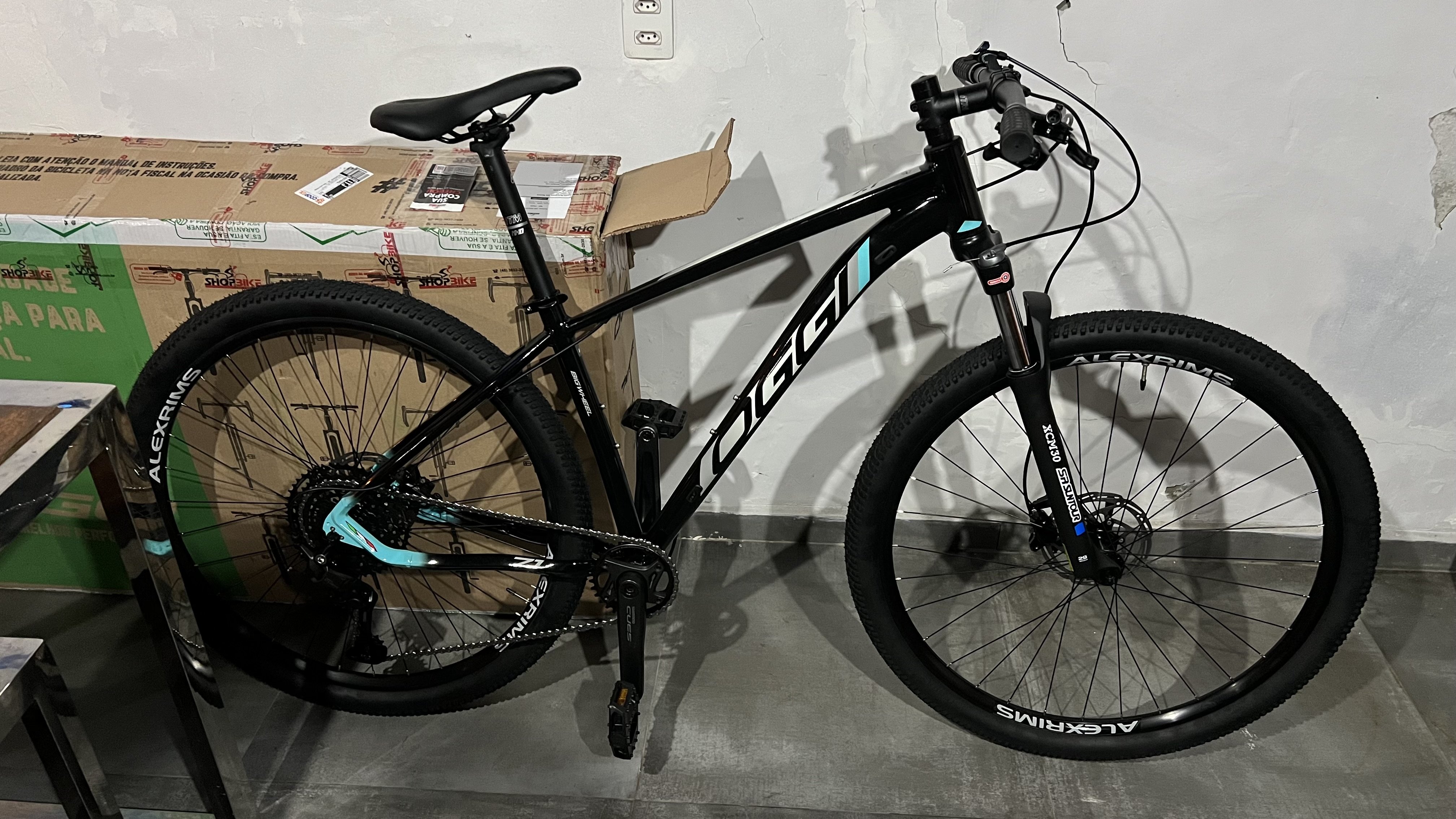 Com uma combinação de cores modernas em preto, cinza e azul, a Oggi Big Wheel 7.1 não só oferece funcionalidade avançada, mas também se destaca visualmente. Os pneus MTB 29" x 2,10 e aros Alexrims MD 25 completam o design robusto e eficiente.