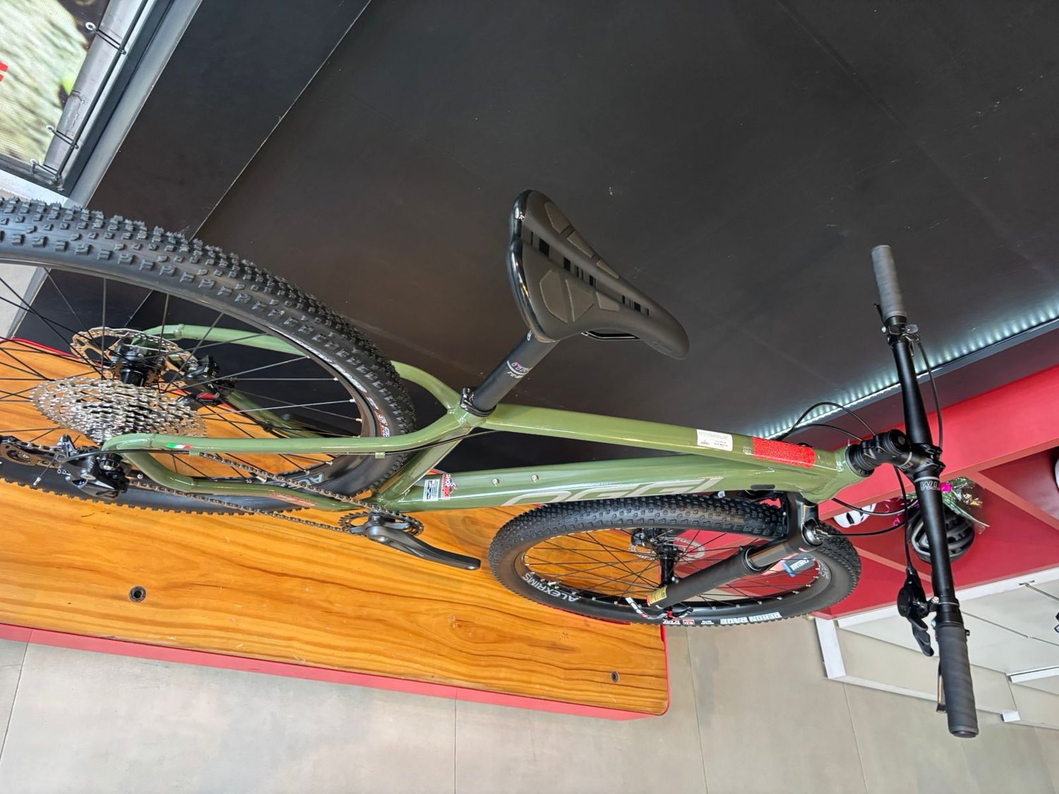 O conjunto de rodas utiliza cubos Shimano Boost com aros Alexrims MD25, oferecendo maior rigidez e eficiência na pedalada. Já os pneus Maxxis Rekon Race 29x2.25 entregam excelente rolagem e aderência em trilhas, estradões e terrenos mistos. Para garantir segurança, o modelo conta com freios hidráulicos Shimano MT200, que oferecem frenagens potentes e progressivas.