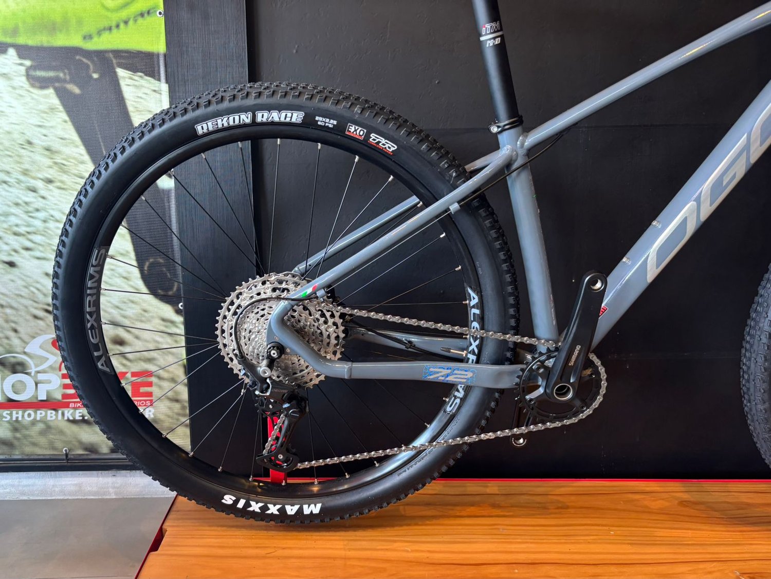O conjunto de rodas utiliza cubos Shimano Boost com aros Alexrims MD25, oferecendo maior rigidez lateral e melhor desempenho em trilhas. Já os pneus Maxxis Rekon Race 29x2.25 garantem excelente rolagem e aderência, sendo ideais para percursos mistos e trilhas rápidas.