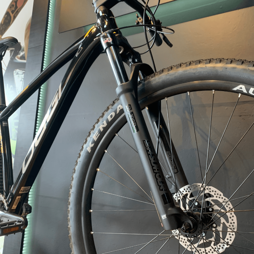 - Suspensão Dianteira: Suntour ar e óleo/RockShox Judy TK 29 - tapered + pop loc - trava no guidão - curso 100 mm;