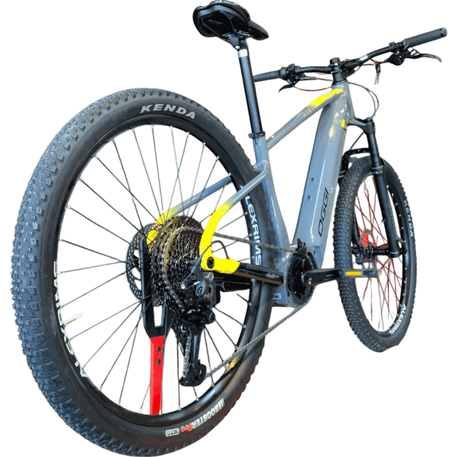 Os aros Alexrims de parede dupla anodizados, combinados com os pneus Kenda Booster SCT kevlar 29" x 2,40, oferecem resistência e aderência, perfeitos para os terrenos mais desafiadores.