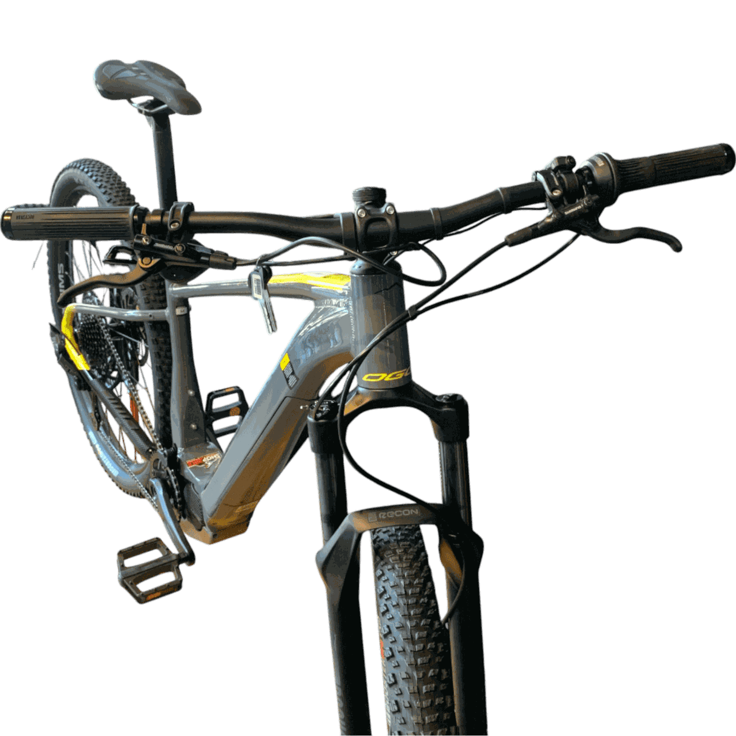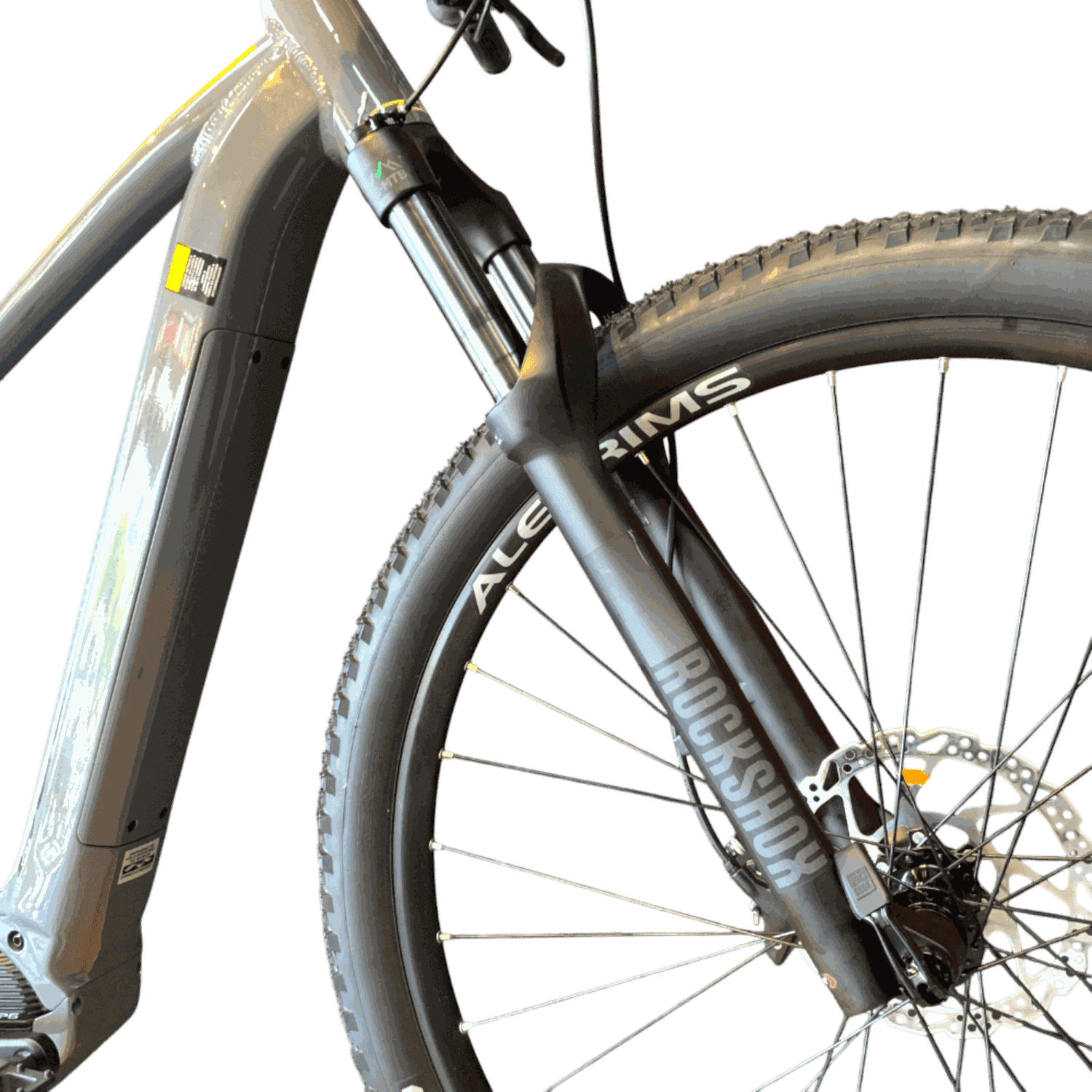 O quadro em alumínio com bateria integrada ao tubo inferior proporciona uma estrutura leve e resistente. A suspensão dianteira RockShox Recon Silver Air com curso de 120 mm e trava garante o melhor desempenho em terrenos irregulares, absorvendo impactos com facilidade.