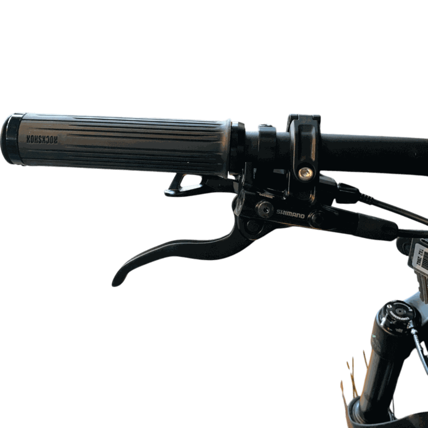 Os freios hidráulicos Shimano Deore M4100 com rotores de 180 mm oferecem excelente poder de frenagem, garantindo segurança e controle em todas as condições.