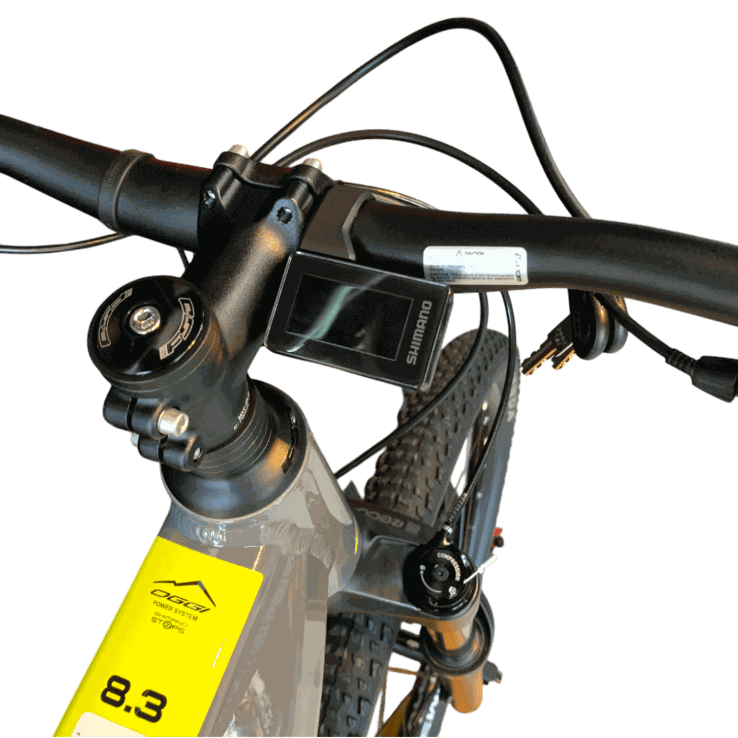 Com guidão, mesa e canote em alumínio, a Oggi Big Wheel 8.3 oferece um ajuste perfeito para o ciclista. O selim VELO e as manoplas RockShox proporcionam conforto e aderência, essenciais para longas pedaladas.