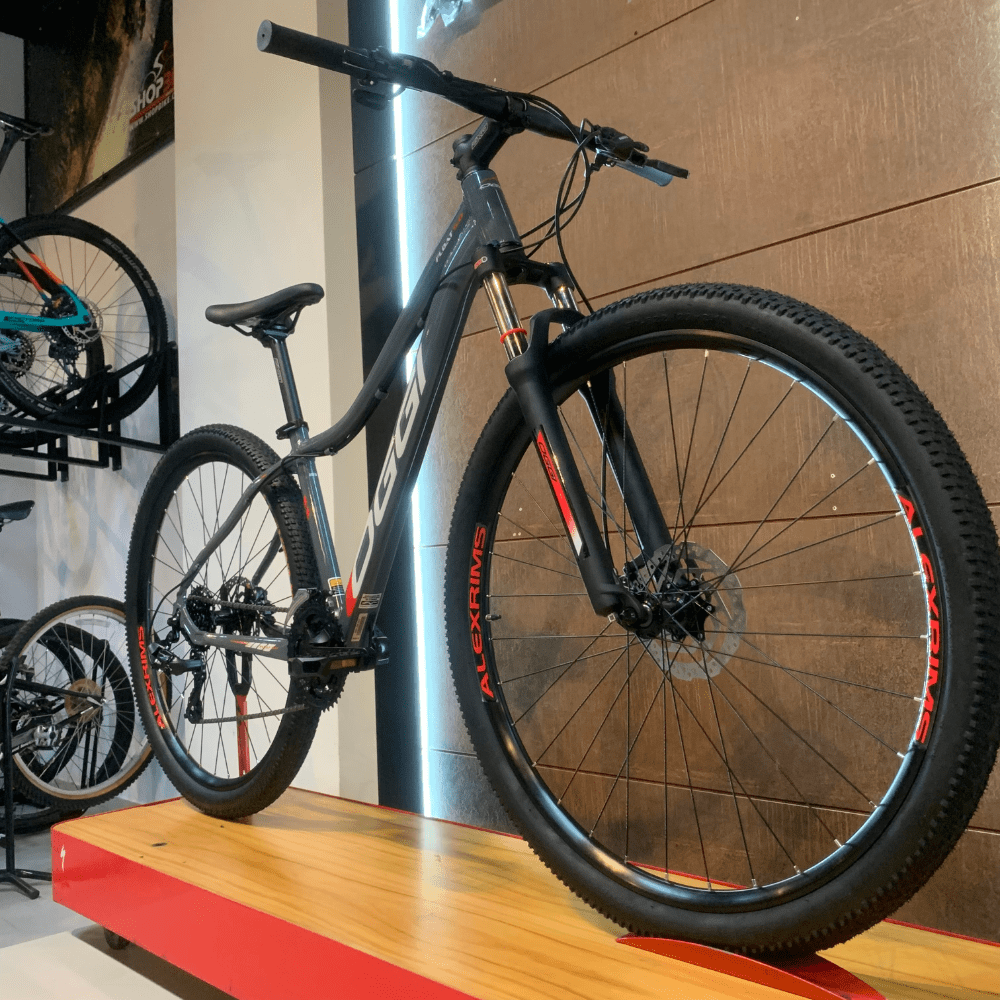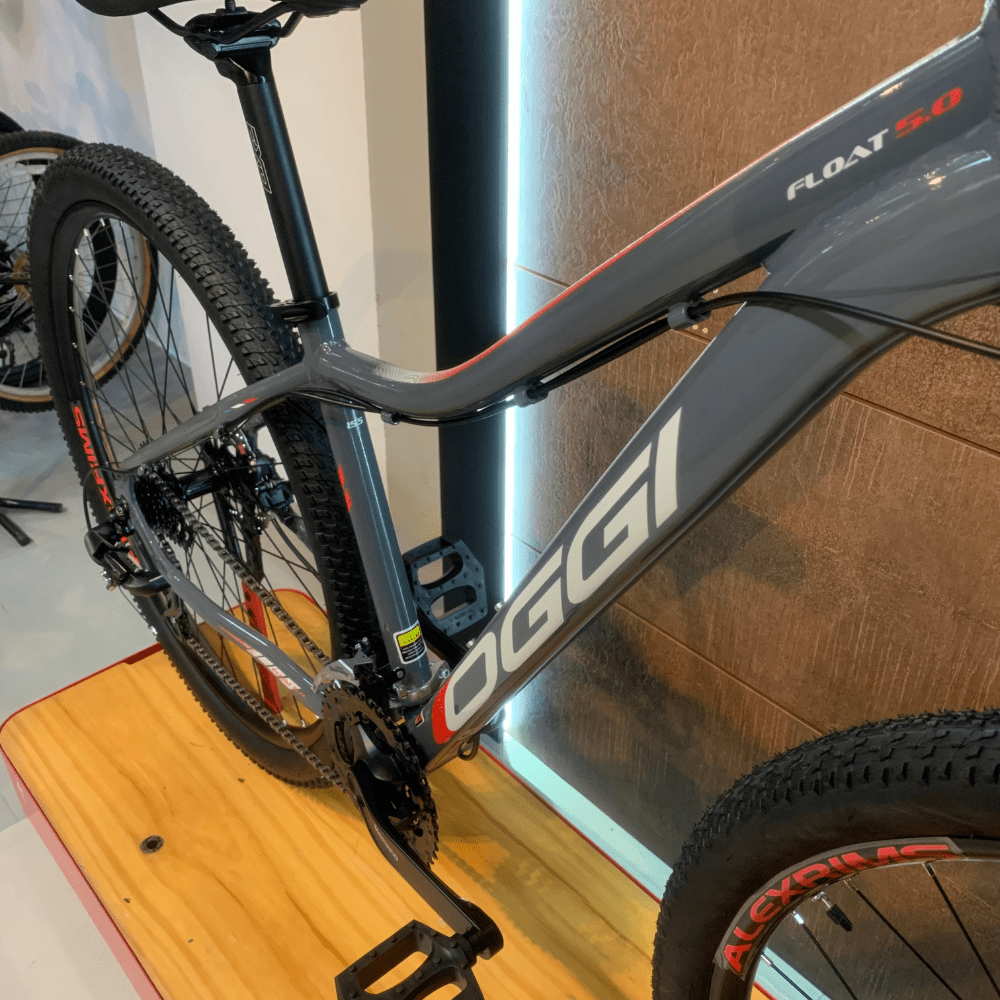 Equipada com cubos Shimano TX 505, aros Alexrims MD21 e pneus MTB 29" x 2.10, a Bicicleta Oggi Float 5.0 oferece aderência e estabilidade em qualquer terreno, seja na estrada ou na trilha.