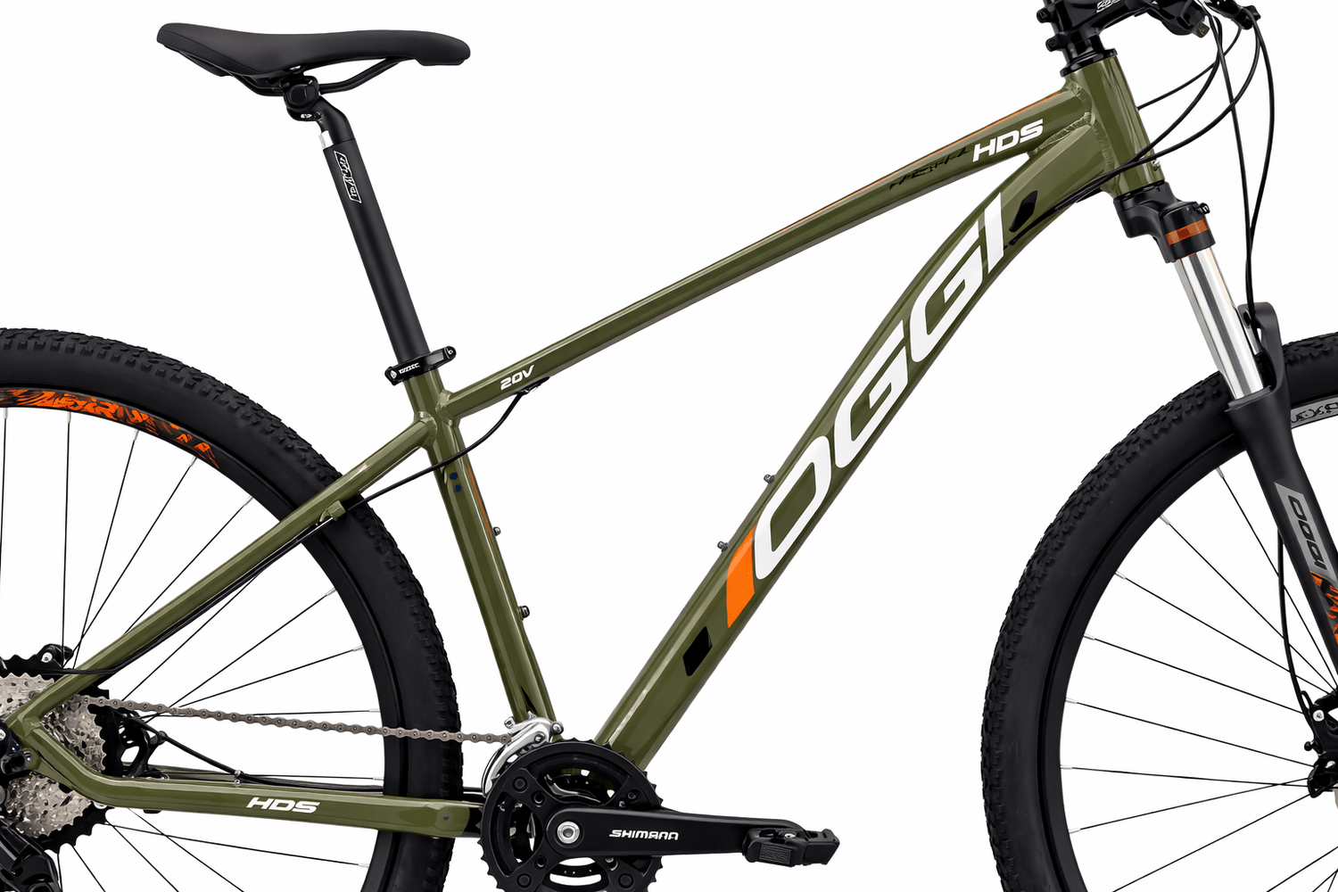 O quadro em alumínio 6061 T6 com tubo de selim de 34,9mm, ponteira post mount e rota interna para cabos proporciona leveza e resistência, com rabeira Snake e head tube oversize para maior rigidez. A suspensão dianteira MTB 29 com 100mm de travel e trava no ombro absorve impactos, garantindo conforto em subidas e descidas. A transmissão Shimano inclui passadores SL-M315 8V, câmbio traseiro RD-U2000 GS 8V, pedivela FC-U2000 32D 175mm, corrente CN-HG40 e cassete CS-HG400 11-45 dentes, oferecendo trocas suaves e ampla gama de marchas.