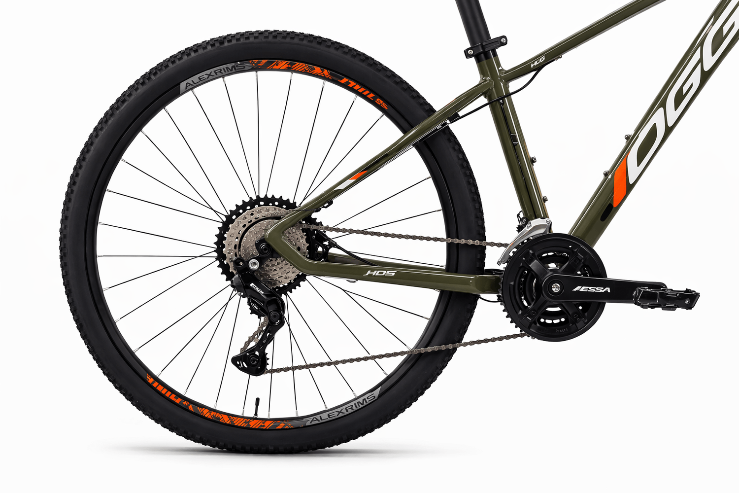 O cockpit conta com guidão reto 31,8mm, mesa aheadset 31,8mm de 90mm e canote 31,6mm em alumínio, todos em preto, complementados por um selim MTB DDK ergonômico. Os freios Shimano hidráulico BR-MT200 com rotores de 160mm asseguram frenagem precisa, enquanto as rodas com cubos Shimano quick release 32 furos, aros Alexrims MD21 e pneus 29 x 2.10 preto oferecem tração e estabilidade.