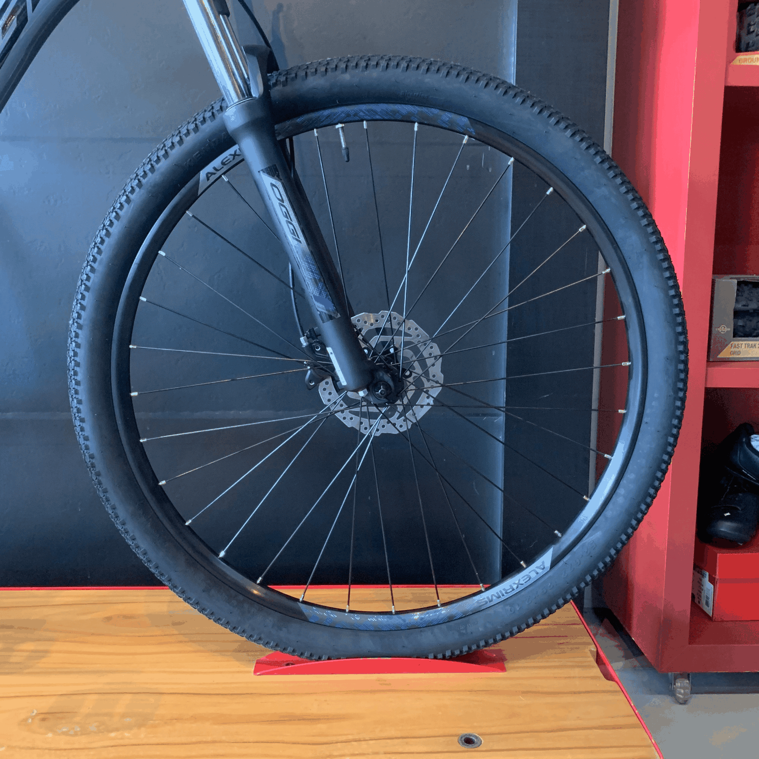 Montada com aros Alexrims e cubos Shimano HB-QC300, a roda proporciona durabilidade e desempenho, enquanto os pneus Kenda 29x2.10 oferecem excelente tração e estabilidade para diversos tipos de terreno.