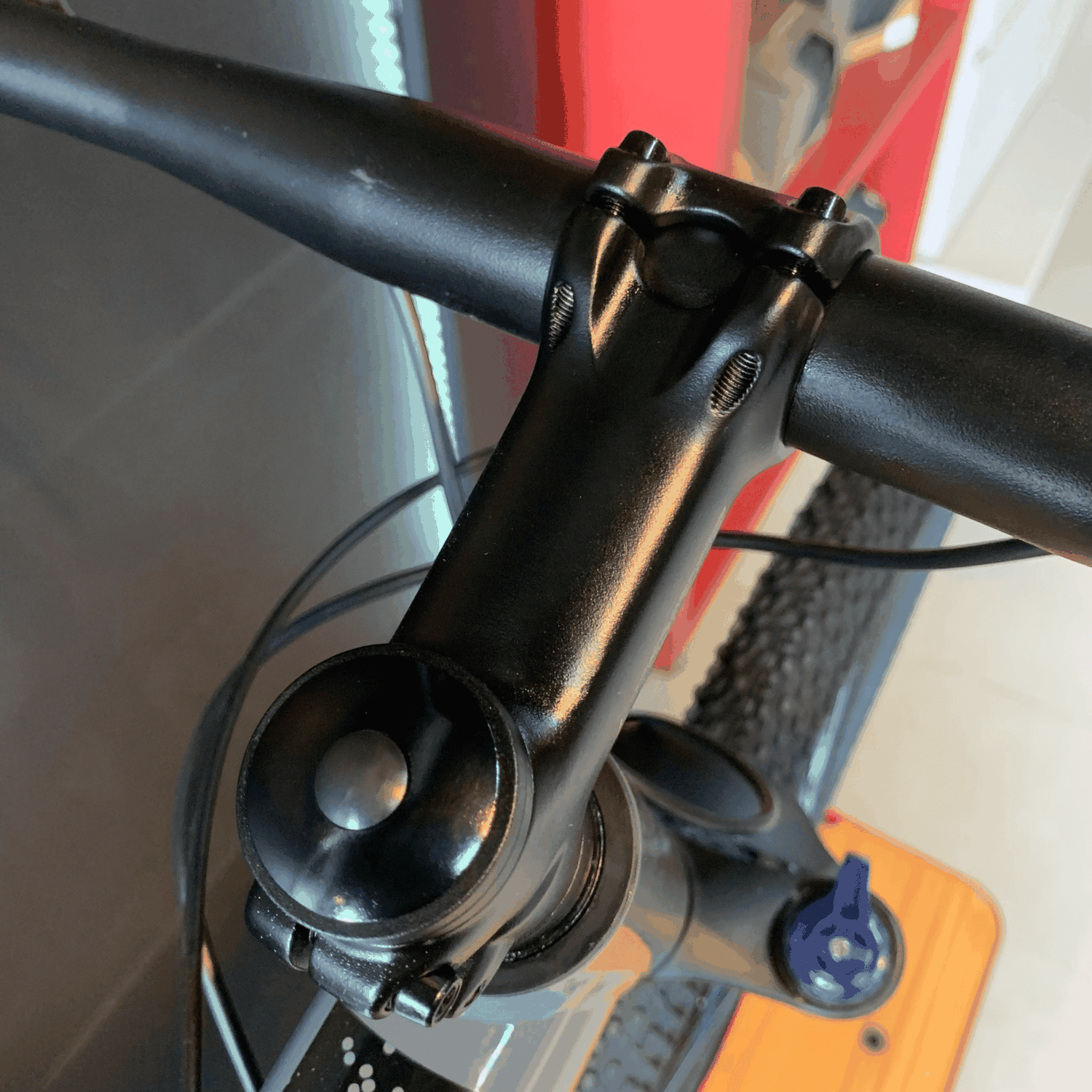 Com guidão de alumínio 705mm, mesa EXD 90mm e selim EXD 185mm, a bike proporciona uma posição de pilotagem estável e confortável, ideal para pedais mais longos com menor fadiga.