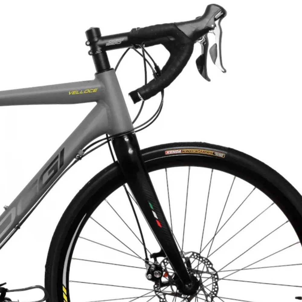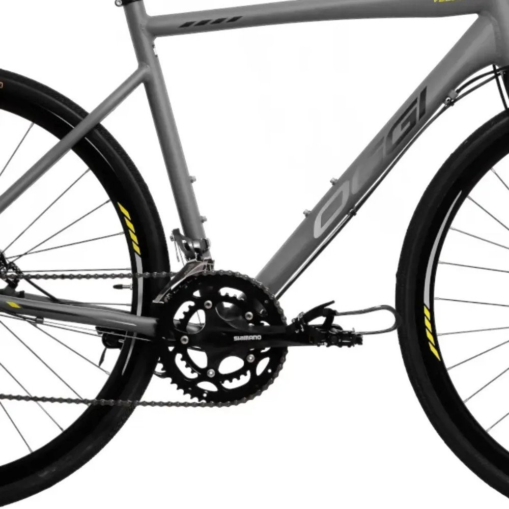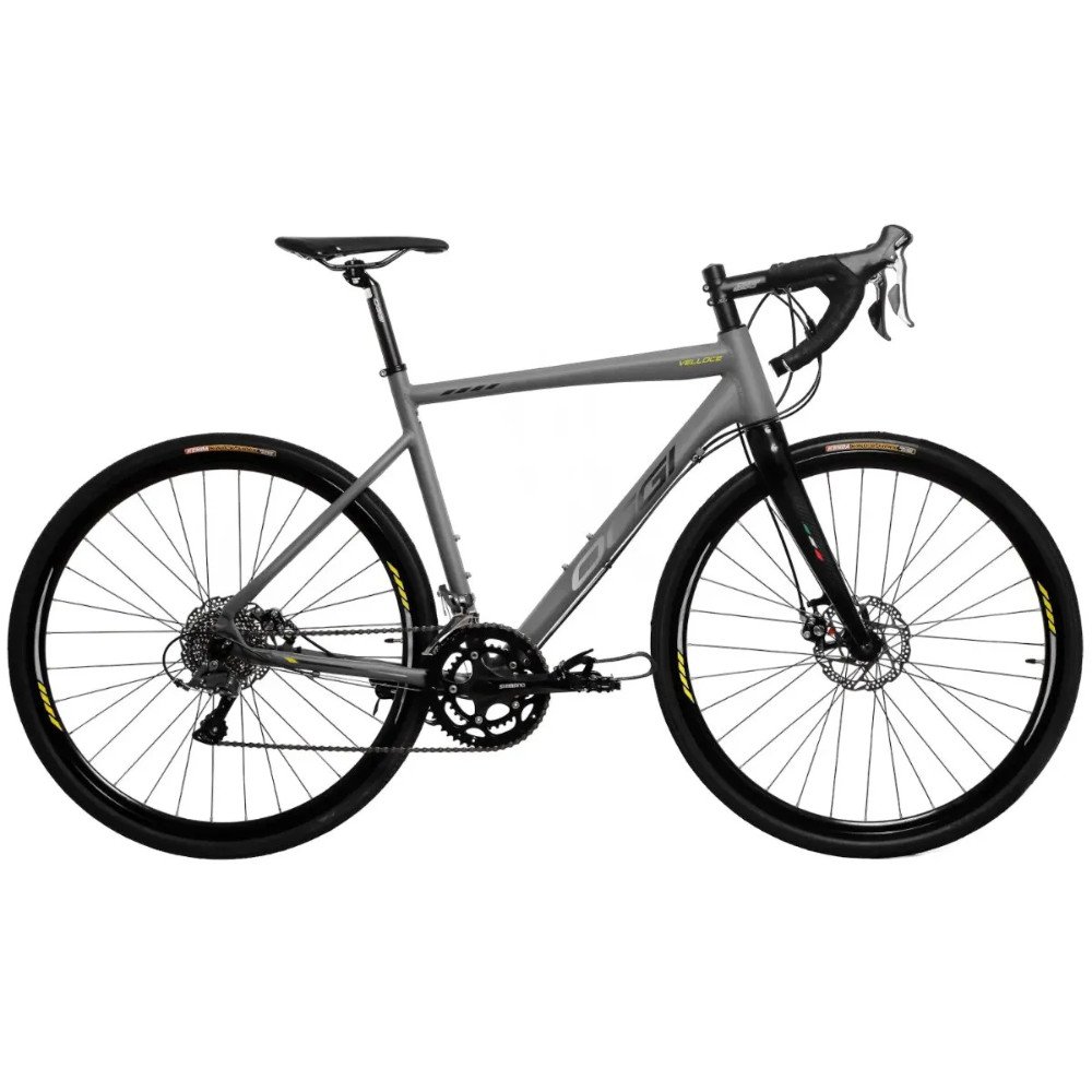 Apresentando a Bicicleta Oggi Velloce LSS Aro 700 Claris 16v 2024 Grafite e Cinza e Amarelo