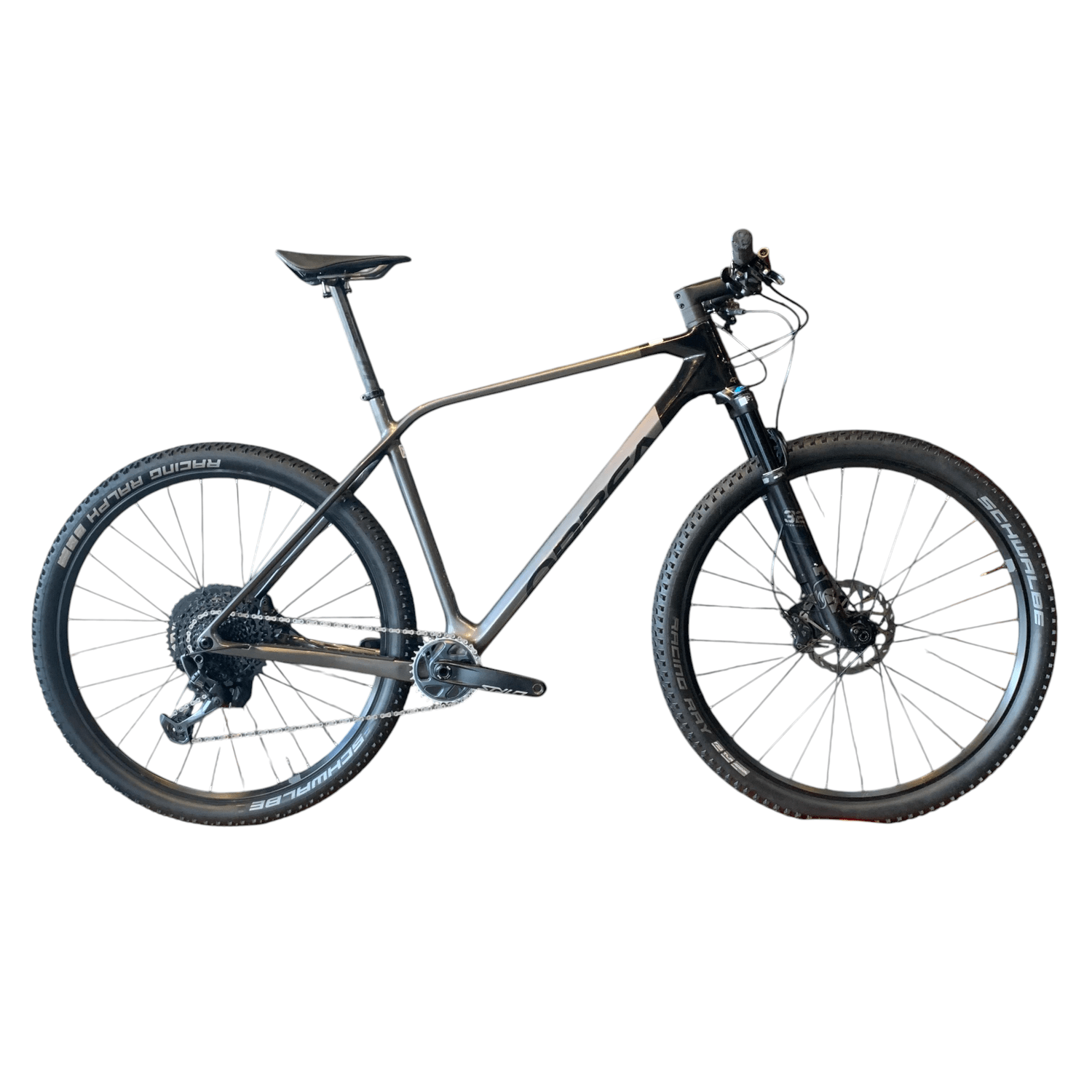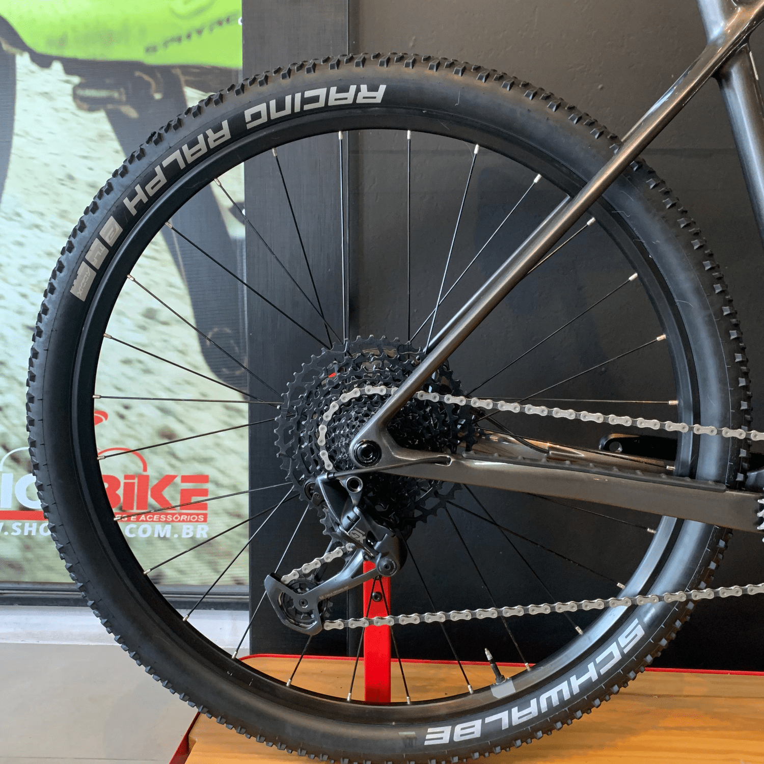 Com cockpit leve e eficiente, composto por guidão e mesa OC Alumínio, além de canote Token em carbono e selim Selle Itália Boost, a bike proporciona postura agressiva e conforto em longos pedais. Os pneus Schwalbe Racing Ralph/Ray Tubeless 29x2.25 completam o conjunto, trazendo tração e aderência superiores.