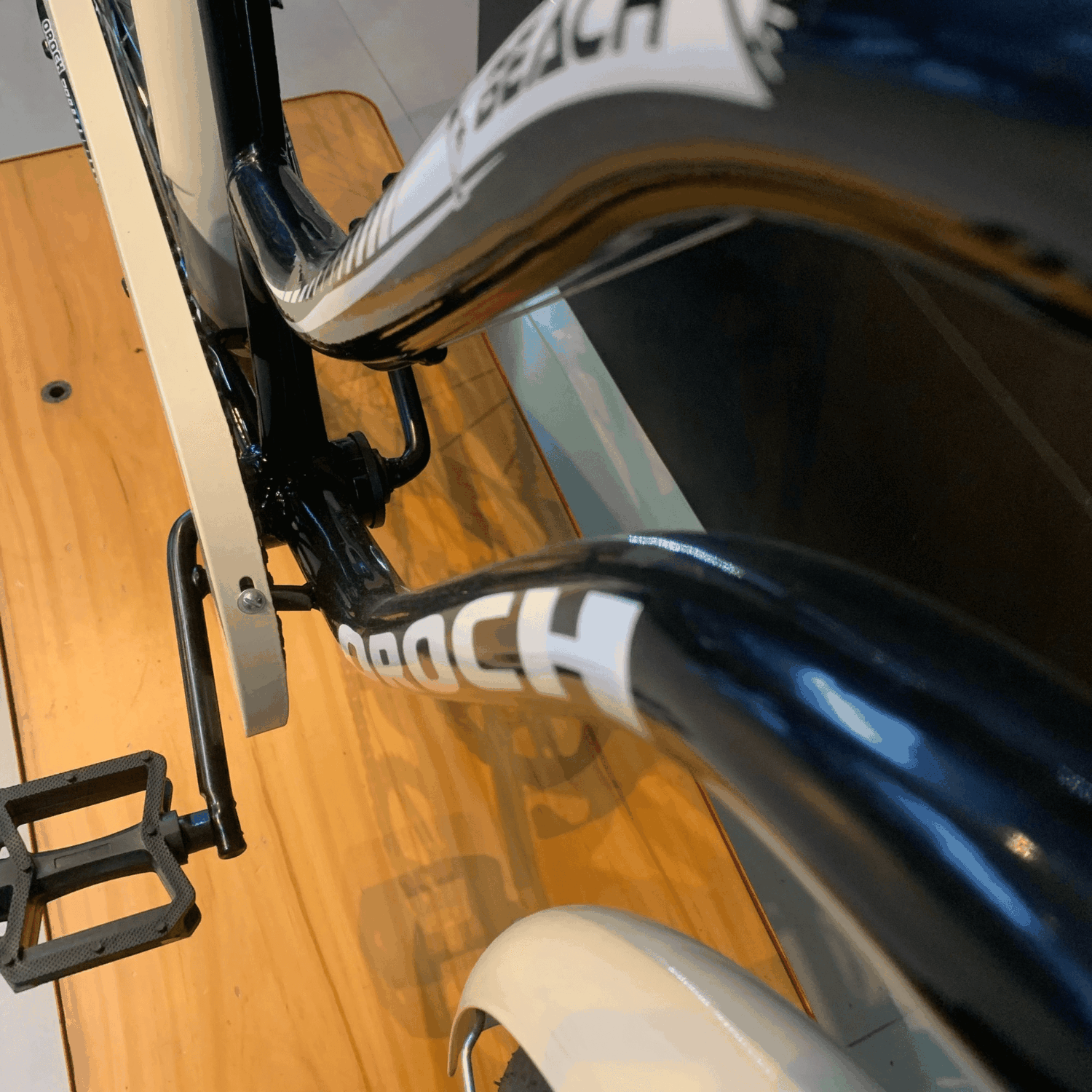 A transmissão monomarcha simplifica a pedalada, com uma pedivela de 165 mm adequada para adultos, uma coroa de 46 dentes e um cassete de 20 dentes, oferecendo uma relação de marchas otimizada para terrenos planos ou com leve inclinação. Os freios GTA V-brake proporcionam frenagem segura, com manetes ergonômicos que facilitam o controle, mesmo em superfícies molhadas. O cockpit inclui um guidão Oroch em alumínio, com design beach que promove uma postura ereta (backsweep estimado de 20° a 25°), uma mesa Oroch de 65 mm para ajuste preciso e um canote de alumínio com selim Yamada de 210 mm, largo e acolchoado para maior conforto em longos passeios.