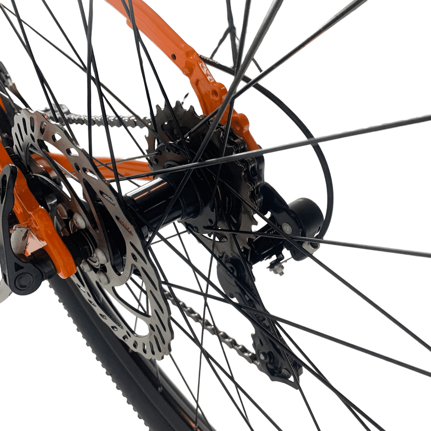 A Bicicleta OXS Glide 100 Aro 29 Shimano 21v combina estilo vibrante com desempenho robusto para enfrentar trilhas e passeios urbanos. Com um quadro leve em alumínio 6061 t6 e componentes Shimano de alta qualidade, essa bike oferece versatilidade e resistência, tudo em um design arrojado nas cores laranja, vinho e s-lime.
