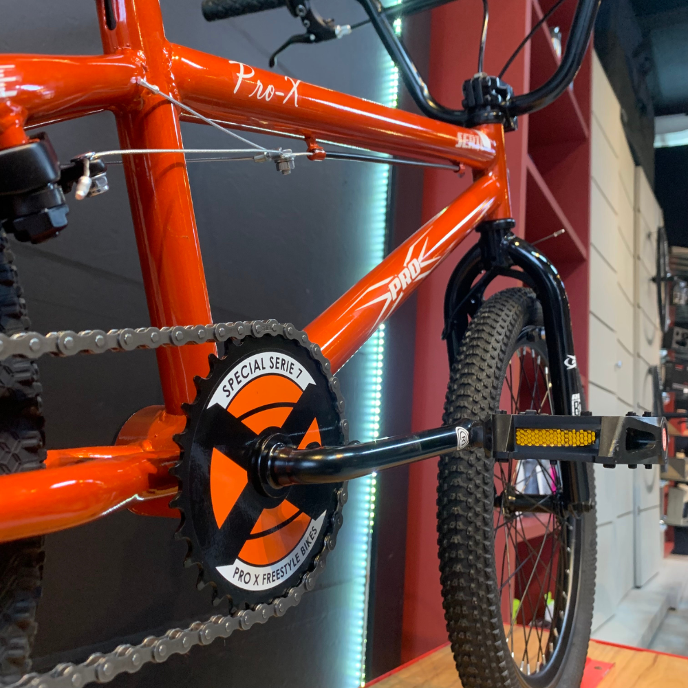 A Bicicleta Pró-X Série 7 Aro 20 Laranja é a escolha ideal para quem busca adrenalina e diversão em suas pedaladas. Projetada com materiais de alta qualidade e componentes duráveis, esta bicicleta oferece uma performance robusta e confiável, perfeita para manobras radicais e aventuras urbanas.