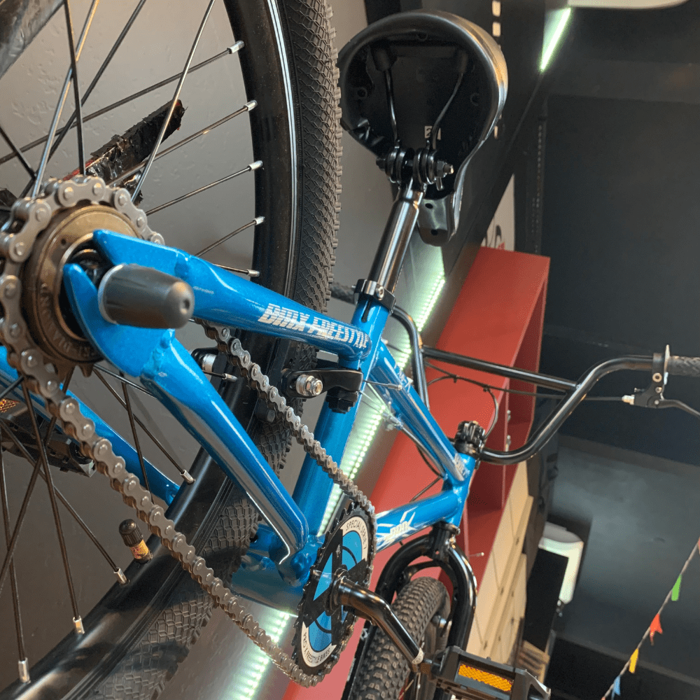 Equipado com um pedivela monobloco em aço e uma coroa Special Série 7 Pro X Freestyle Bikes de 32 dentes, este modelo oferece uma transmissão suave e eficiente. A corrente Mava 3L-3 e o cassete Tri-Diamond de 16 dentes complementam o conjunto, assegurando uma pedalada sem falhas e com excelente desempenho.