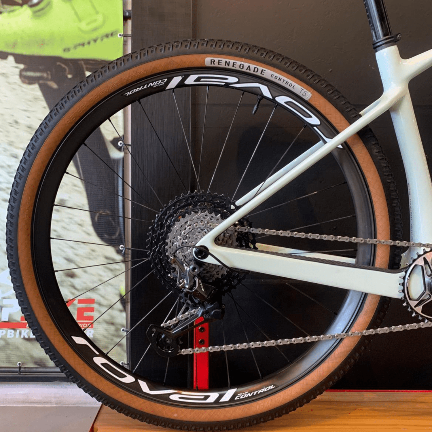 Os freios hidráulicos Shimano XTR M9100 proporcionam controle total nas frenagens, enquanto as rodas Roval Control com cubos DT Swiss 350 oferecem rolamento suave e resistência nas trilhas mais técnicas. Os pneus Specialized Renegade Control e Fast Trak completam o conjunto, garantindo aderência e rolagem veloz.