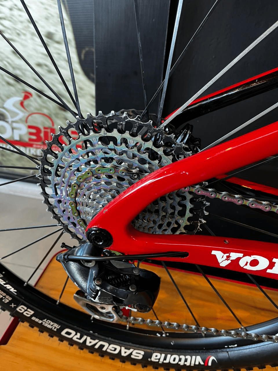 - Pneus: geralmente Vittoria Barzo XC-Race 29×2,25″ na dianteira e Vittoria Mezcal XC-Race 29×2,25″ na traseira em muitas configurações topo de linha da Volcano.