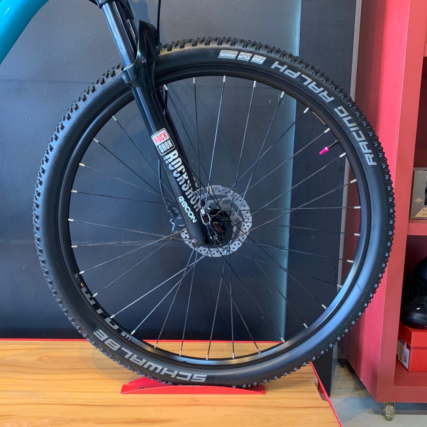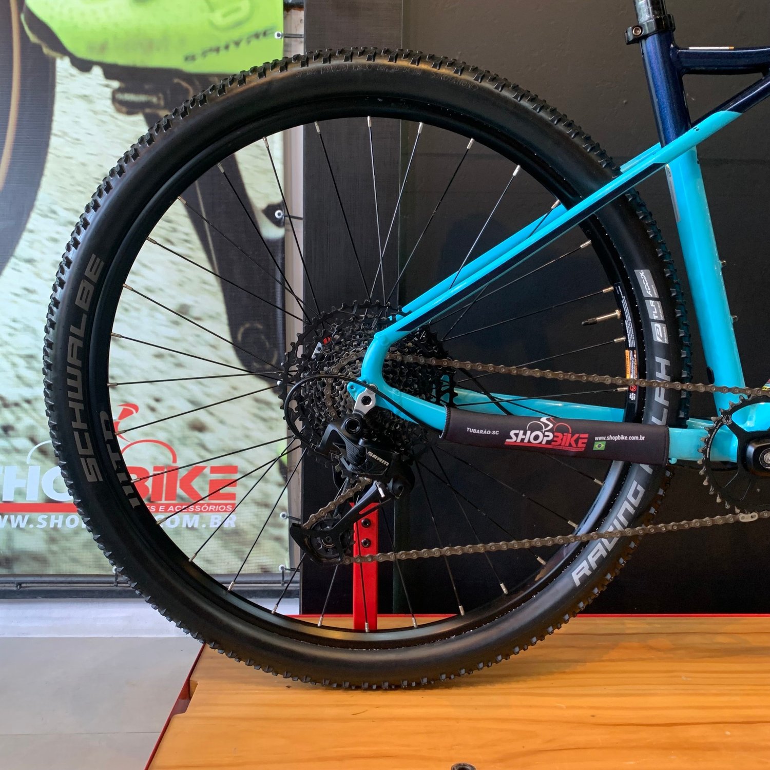 Equipada com rodas Wtb ST i21 e pneus Schwalbe Racing Ralph Tubeless Ready 29x2.25, essa bike oferece aderência, velocidade e resistência a furos, com compatibilidade total com tubeless para quem quer desempenho extra.