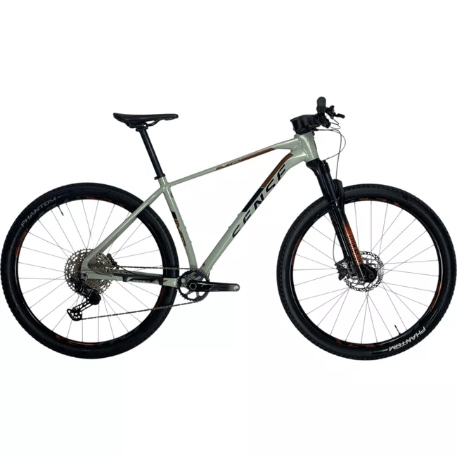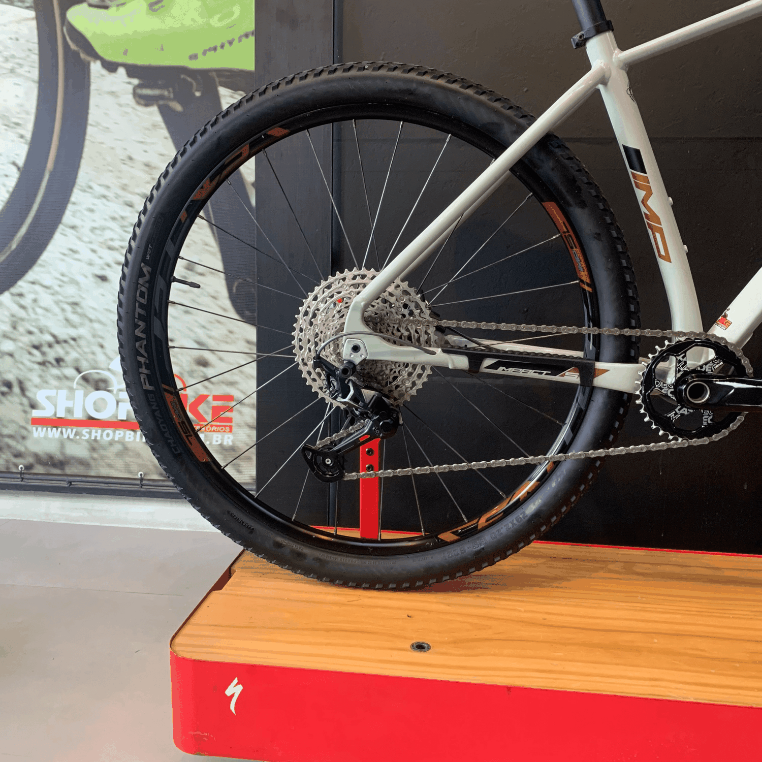 As rodas possuem cubos Koozer XM490 Pro Boost (148x12 mm traseiro, 110x15 mm dianteiro, 141x5 mm, 28/32 furos), aros Sentec Alumínio TLR (tubeless ready) e pneus Chao Yang Phantom 29x2,20, oferecendo tração e estabilidade. Com peso aproximado de 13 kg, ela é competitiva para uma MTB manual, alinhando-se a modelos como a Sense Impact SL SLX 12v (12,9 kg).
