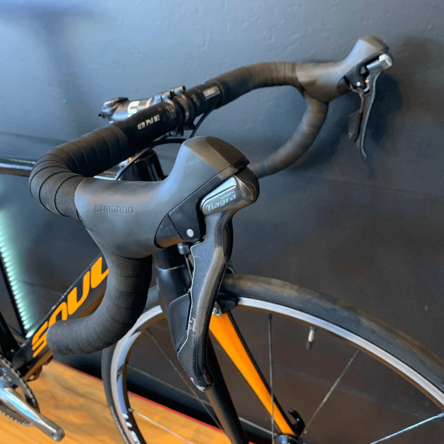O cockpit traz componentes One em alumínio e um selim Specialized Bridge, unindo leveza e conforto para longas pedaladas. Com aproximadamente 8,8 kg, a Soul Ironfox Tiagra é sinônimo de desempenho, tecnologia e elegância no ciclismo de estrada.