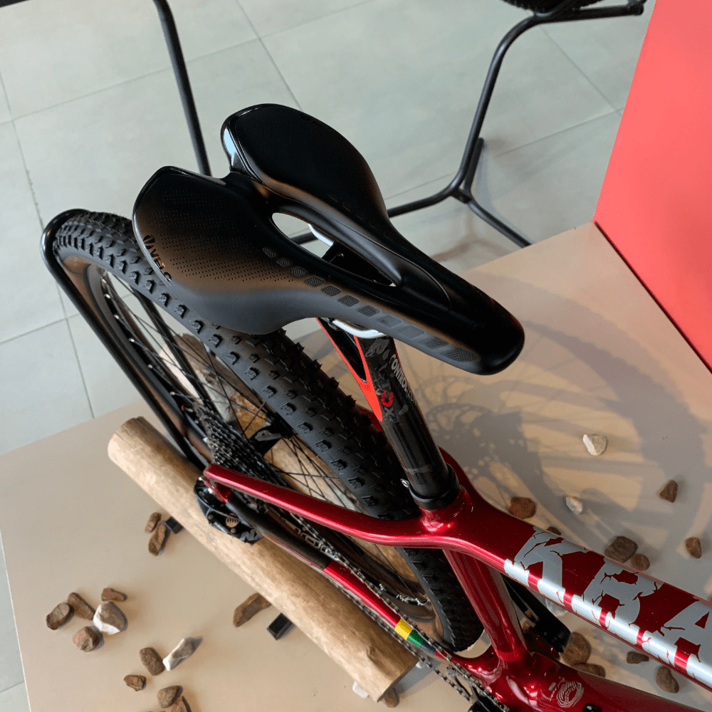 O quadro em carbono Soul proporciona leveza e resistência, garantindo uma condução ágil e precisa. Com tamanho T-15, adapta-se perfeitamente ao seu corpo, garantindo conforto em longas jornadas. A suspensão dianteira Fox 32 Stepcast com trava no guidão e 100mm de curso oferece um desempenho excepcional em terrenos variados, absorvendo impactos e proporcionando uma experiência suave em qualquer tipo de terreno.