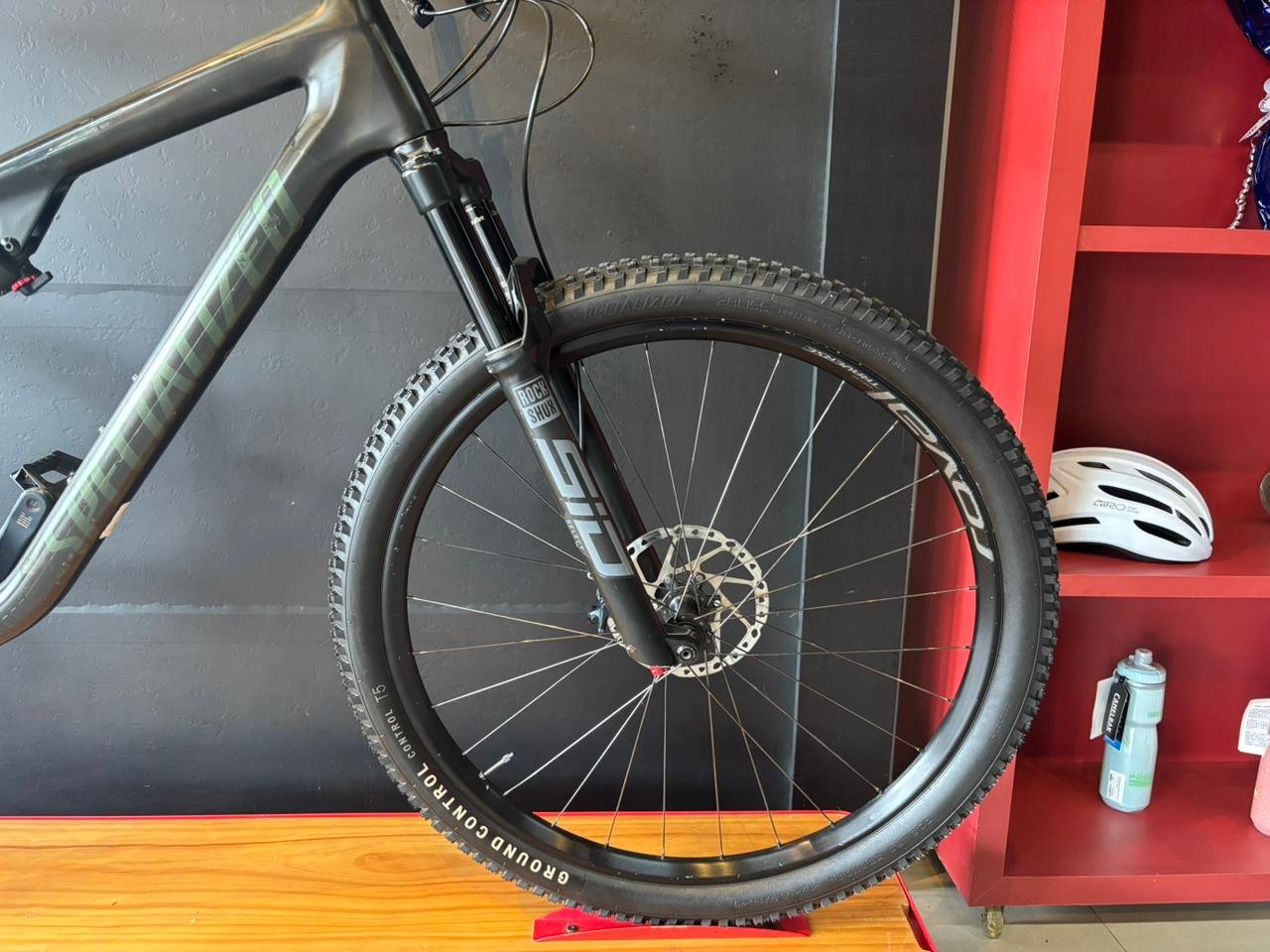 As rodas Roval aro 29 tubeless ready trazem mais leveza, resistência e desempenho, enquanto os pneus Specialized Ground Control T7/T8 29x2.35 garantem alta tração, estabilidade e segurança em curvas, formando um conjunto extremamente equilibrado para trilhas modernas.