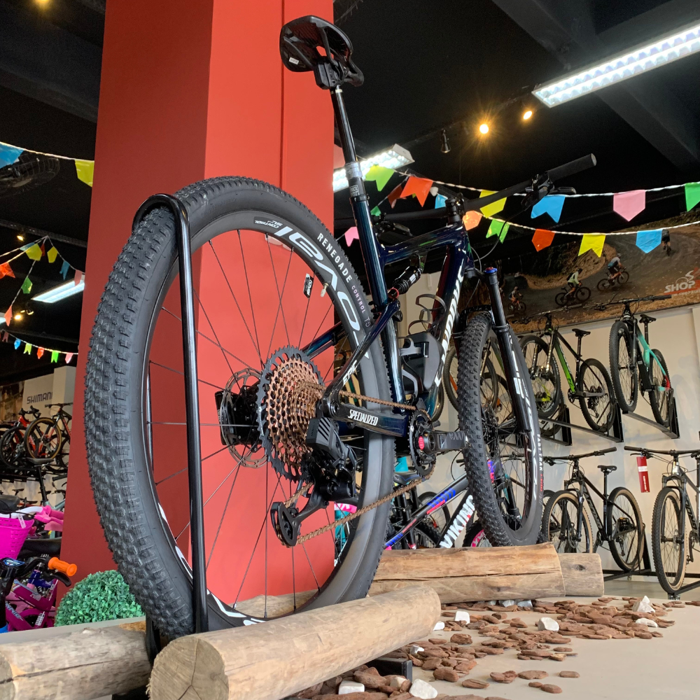 A estrutura em carbono FACT 12m combina leveza e rigidez, proporcionando uma geometria progressiva para corridas de XC. O quadro, desenvolvido com engenharia Rider-First, garante uma condução precisa e responsiva. A suspensão dianteira RockShox-Specialized BRAIN, com ajuste de plataforma em 5 posições, e a suspensão traseira RockShox SID SL ULTIMATE BRAIN asseguram um desempenho superior em qualquer terreno, absorvendo impactos de forma eficiente.